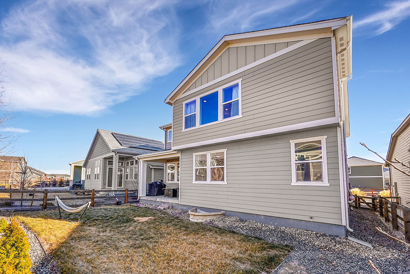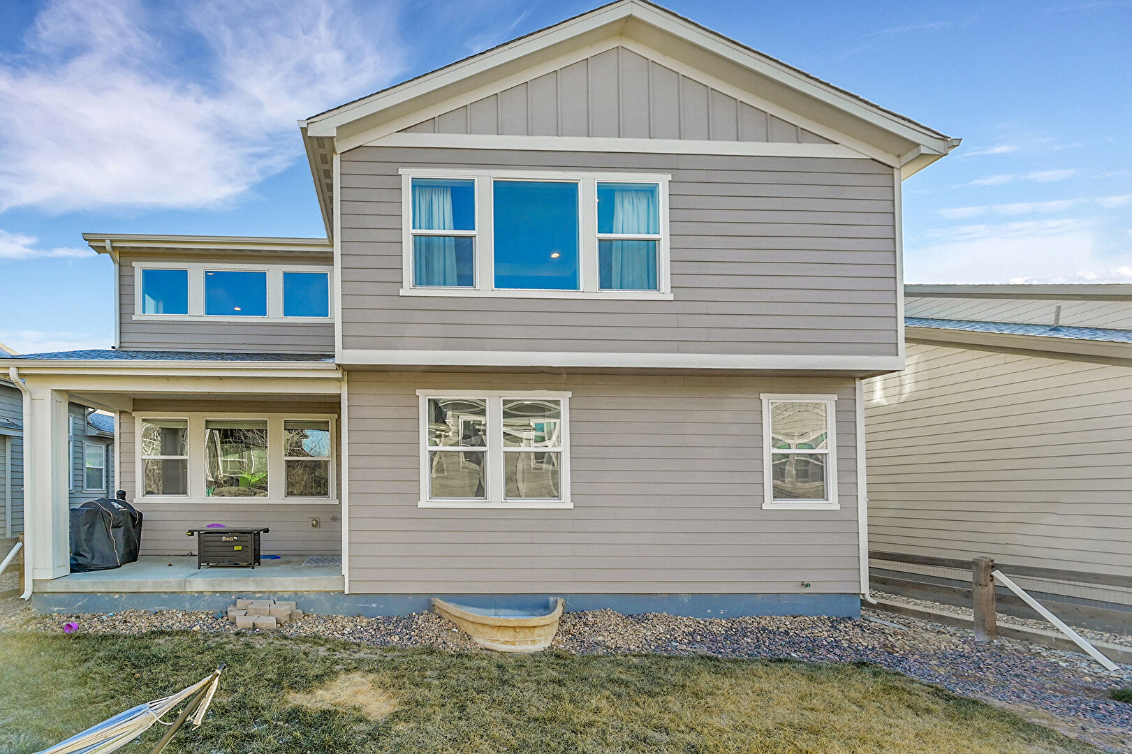 Board Batten Siding, Central Ac, Concrete Foundation, Downspout, Fence, Fire Pit, Grill, Gutters, Horizontal Siding, Lawn, Patio, Porch, Residential View, Vertical Siding, Board Batten Siding, Fence, Vertical Siding