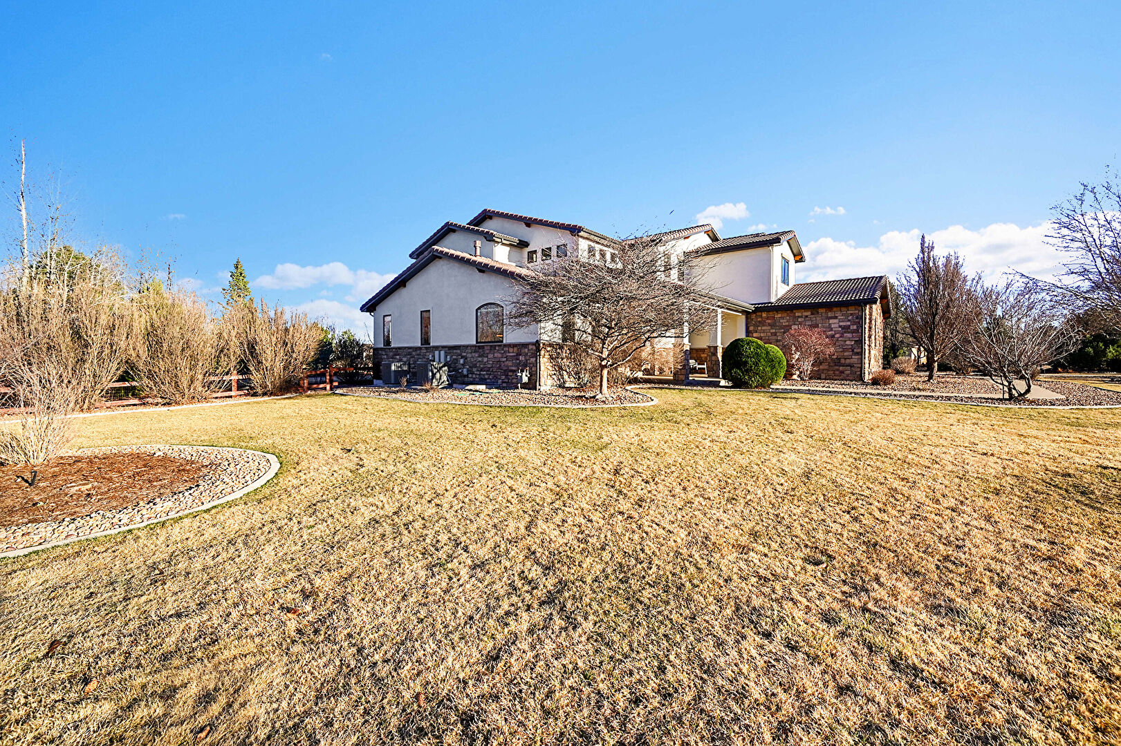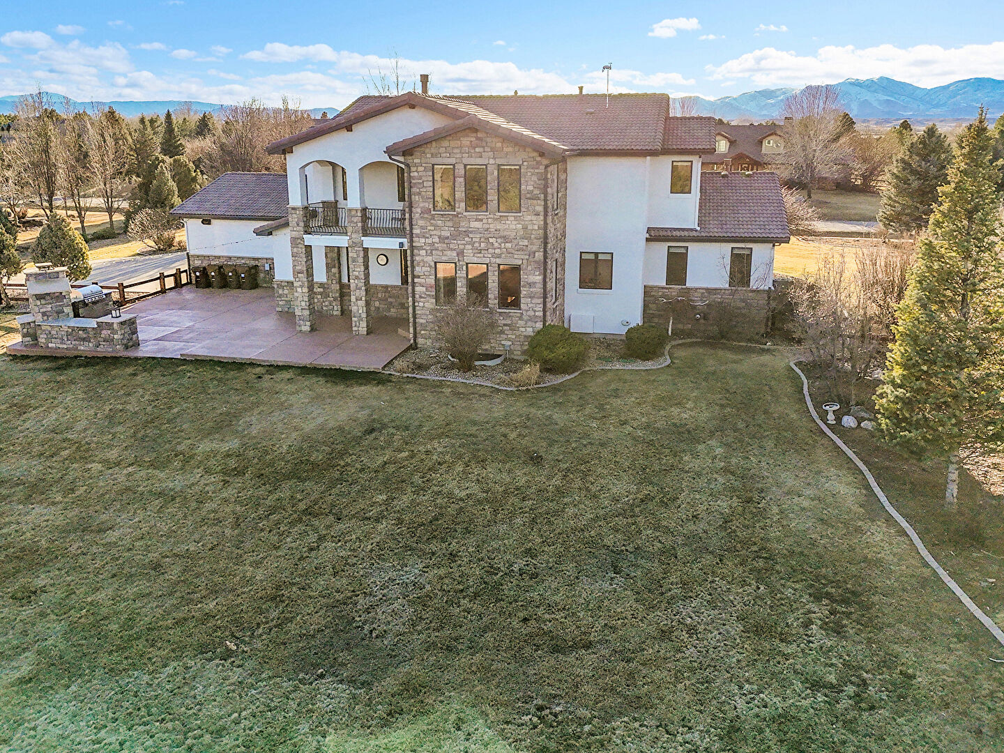 Balcony, Downspout, Driveway, Fence, Fire Pit, Gutters, Lawn, Mountain View, Patio, Porch, Residential View, Rural View, Stone Siding, Stucco Siding, Tile Roof, Downspout, Mountain View, Patio, Porch, Residential View, Rural View, Stone Siding, Stucco Siding, Tile Roof, Water View, Woods View
