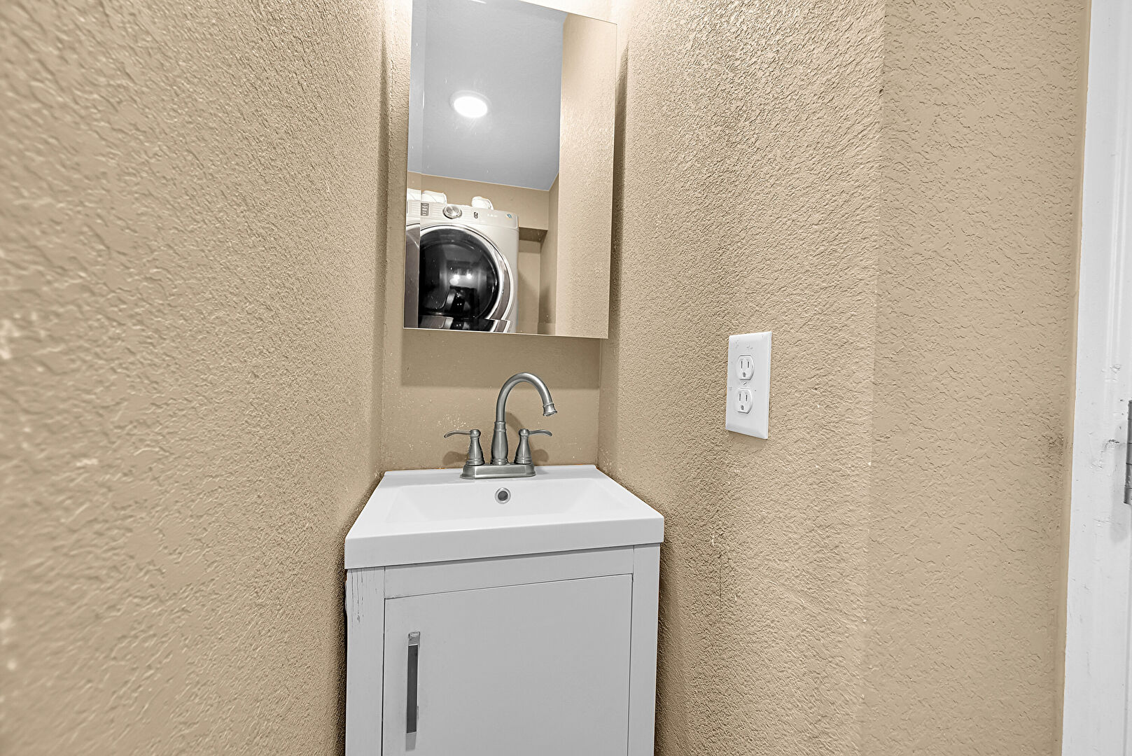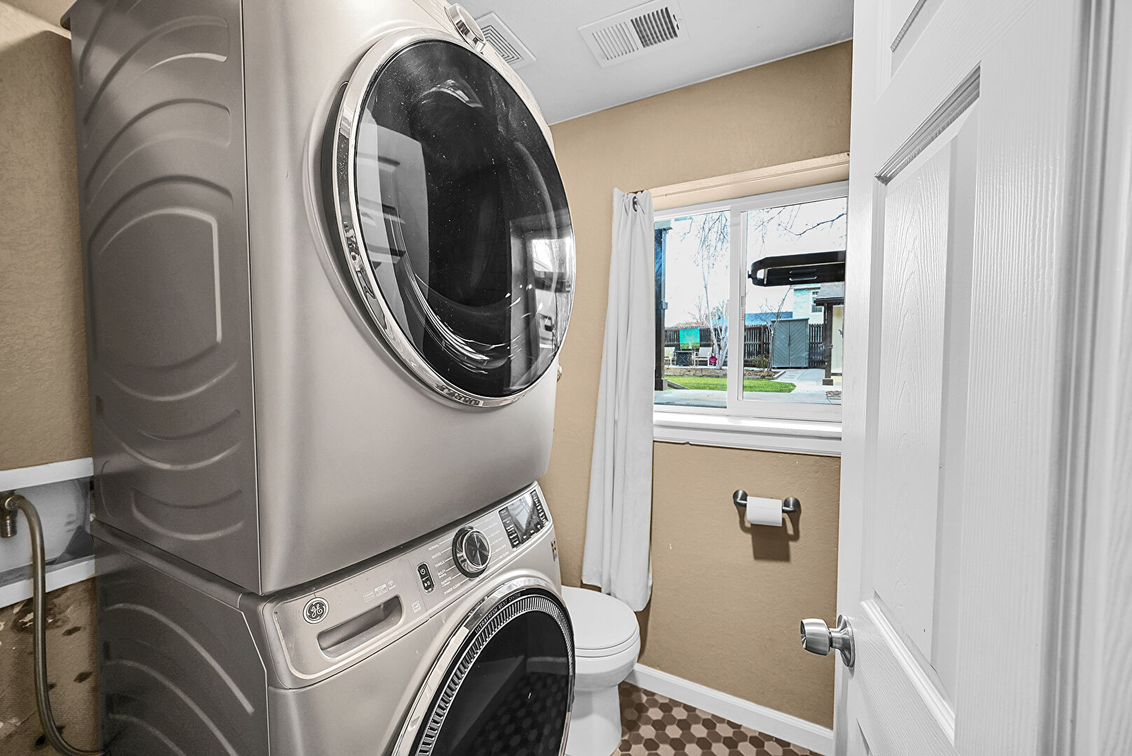 Baseboards Wall, Drywall, Natural Light, Textured Wall, Vent, Vinyl Floor, Washer Hookup, Laundry, Washer Dryer