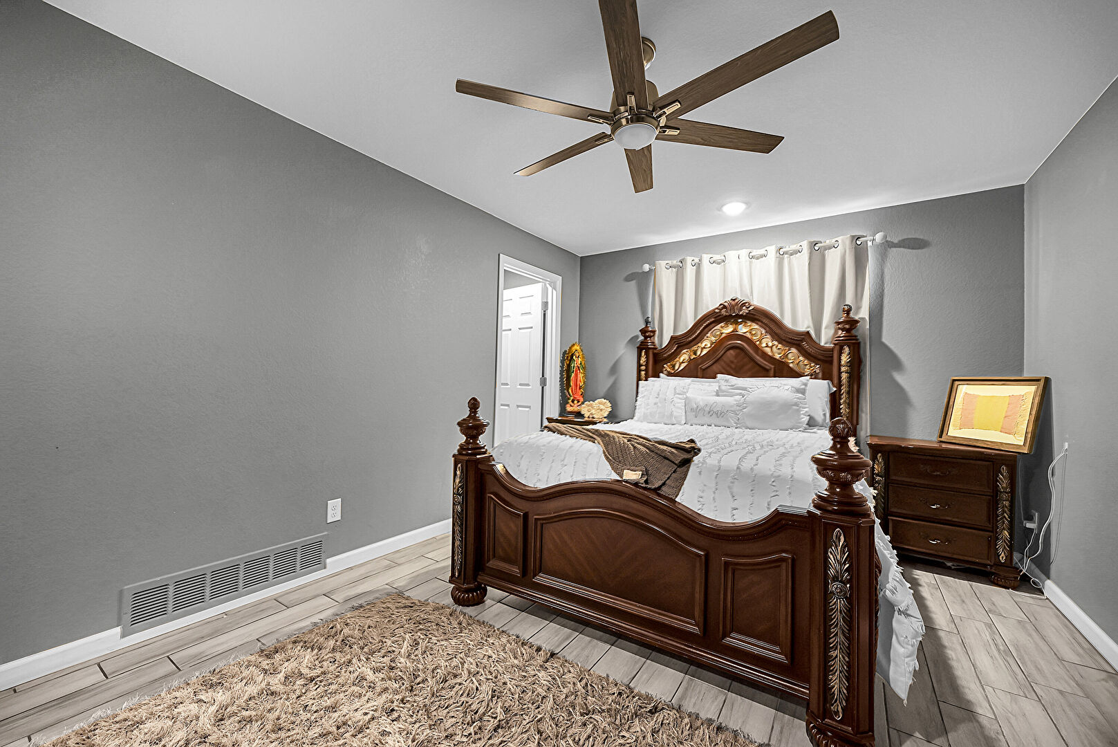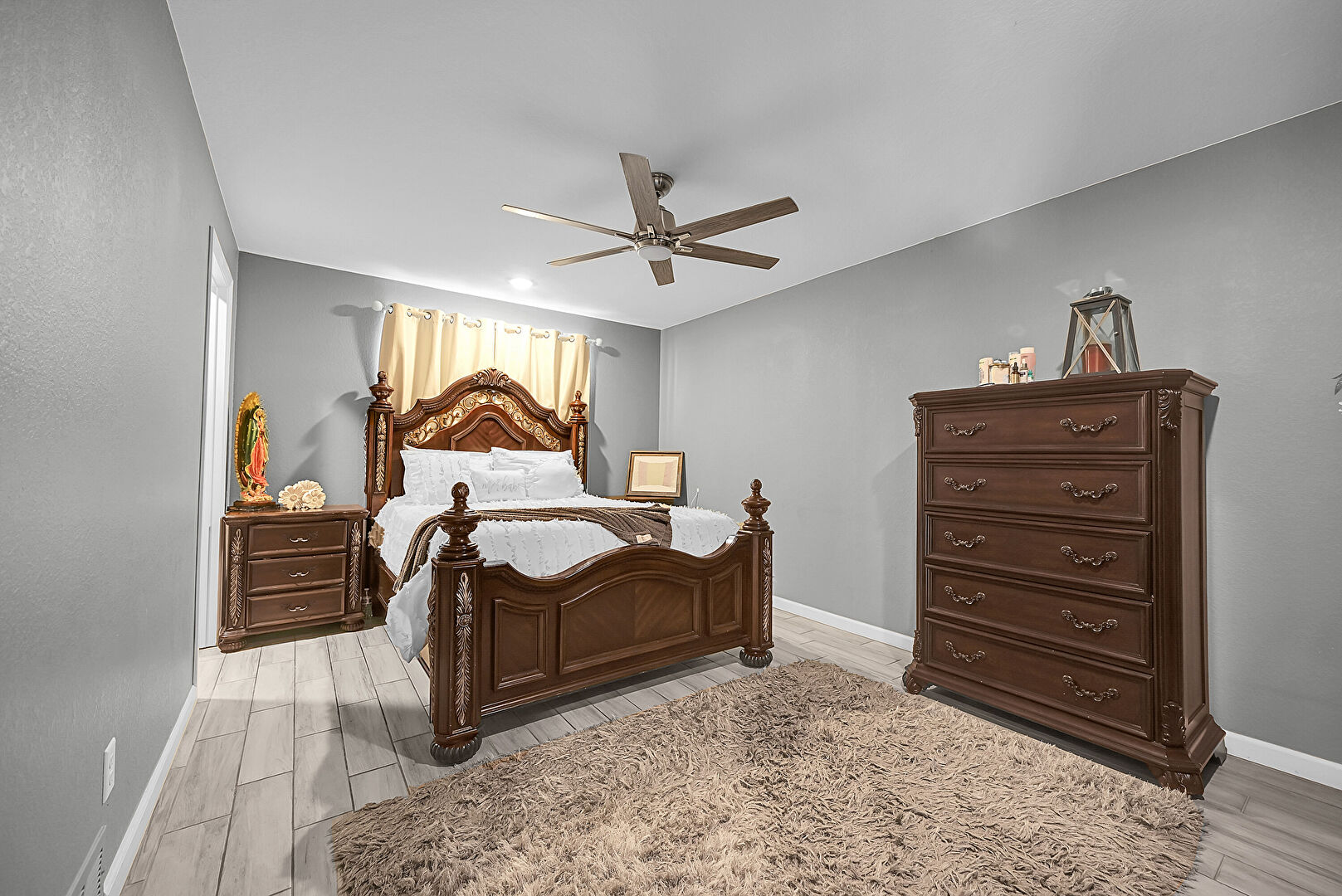 Ceiling Fan, Drywall, Office Area, Recessed Lighting, Wood Finish Floor, Baseboards Wall
