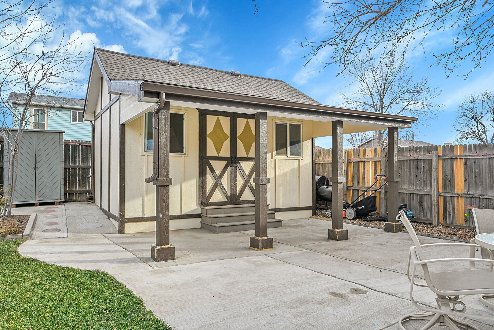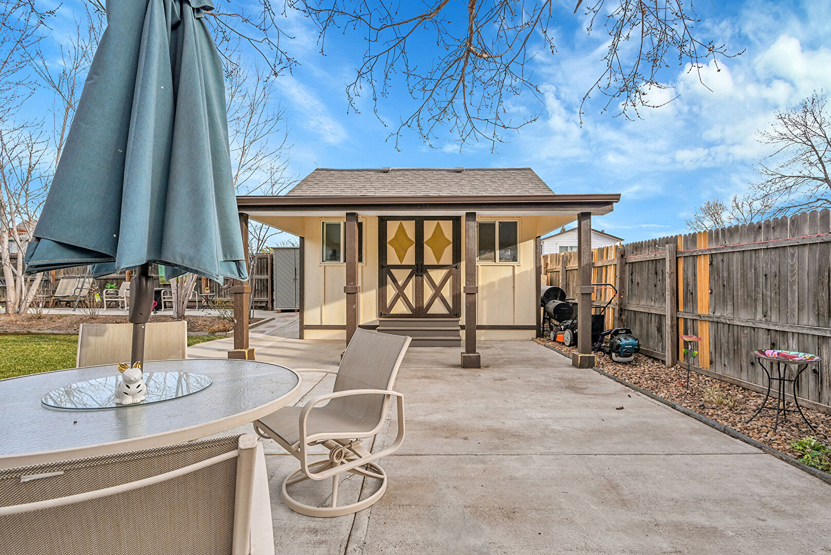 Fence, Outdoor Dining Area, Outdoor Structure, Patio, Shed, Entry Steps, Outdoor Structure