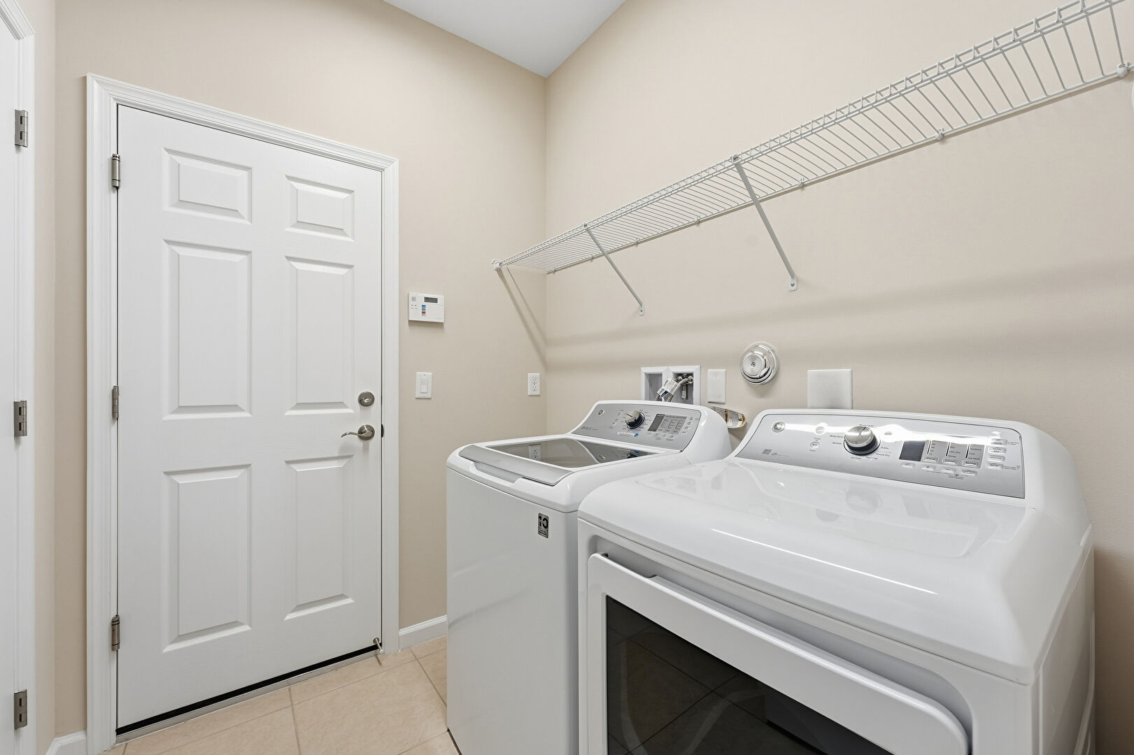 Baseboards Wall, Drywall, Laundry, Tile Floor, Washer Hookup