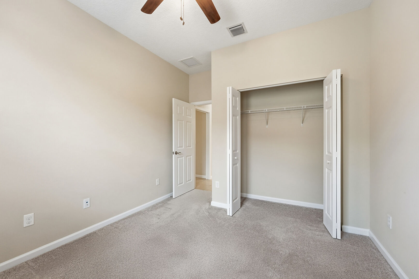 Baseboards Wall, Carpet, Ceiling Fan, Closet, Drywall, Recessed Lighting, Smoke Carbon Monoxide Detector, Tile Floor, Vent, Drywall, Natural Light