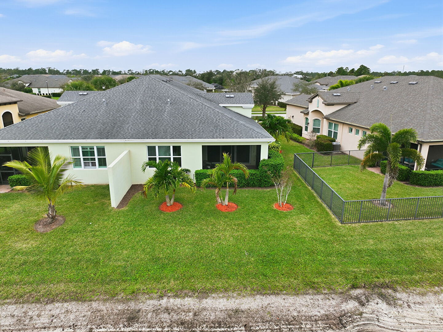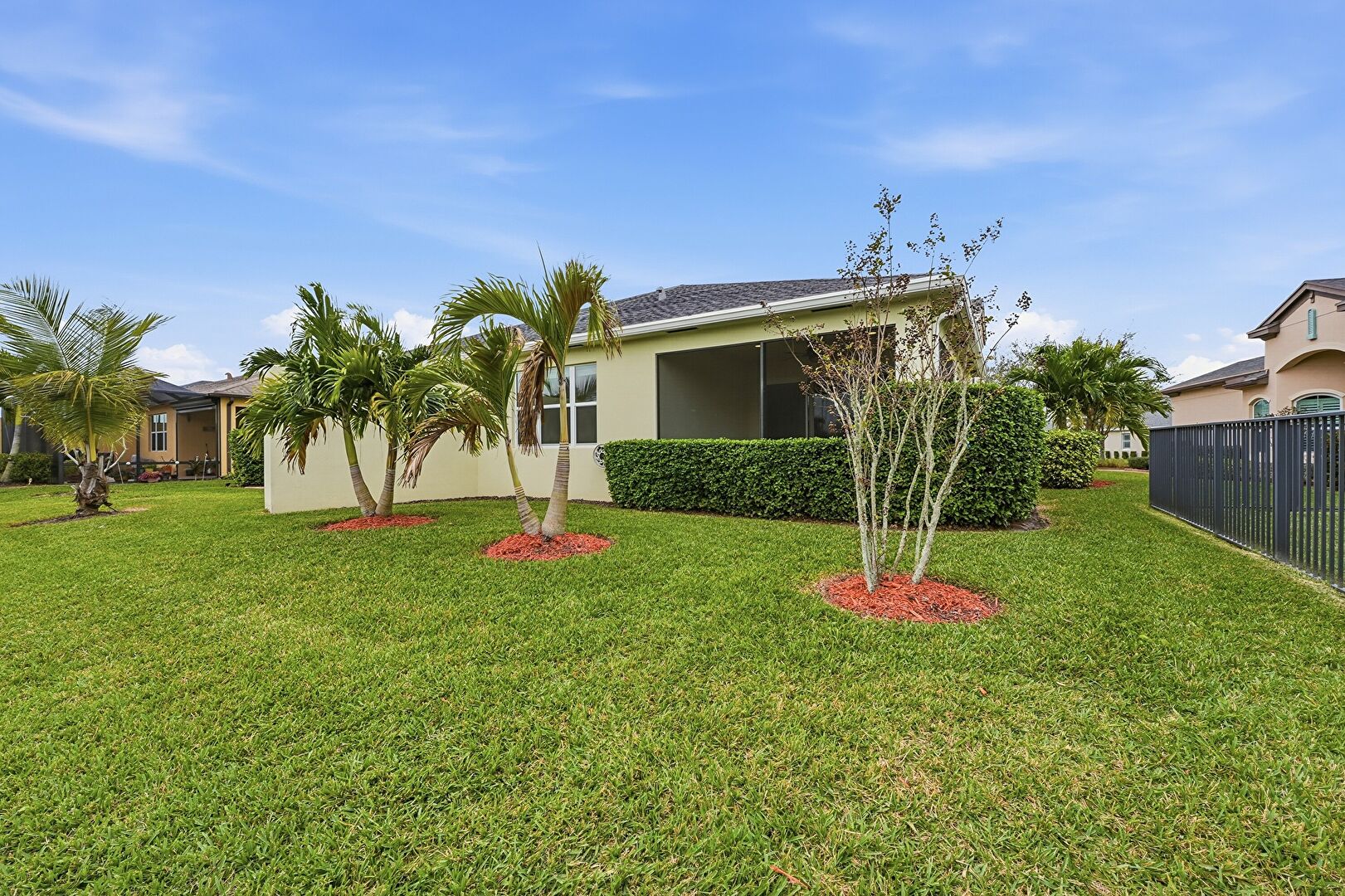 Lawn, Stucco Siding, Sunroom, Fence