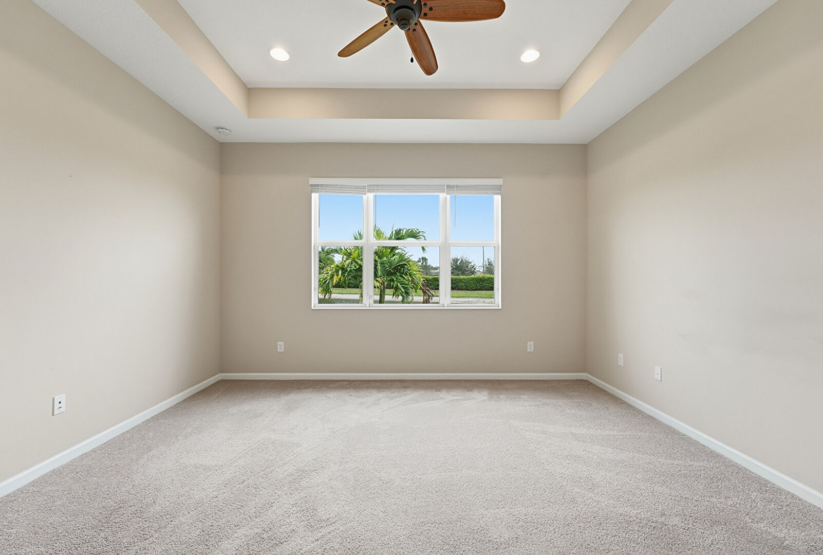 Baseboards Wall, Carpet, Ceiling Fan, Drywall, Ensuite Bathroom, Natural Light, Recessed Lighting, Tray Ceiling, Vent, Carpet, Drywall