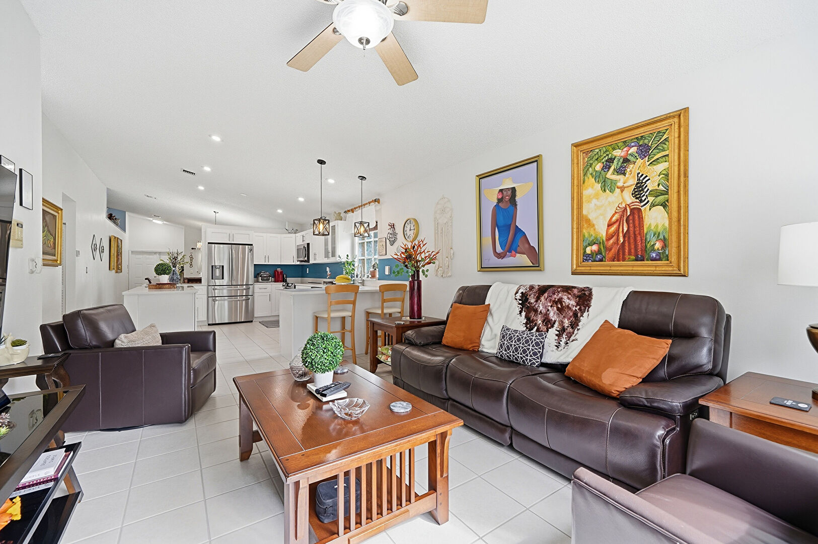 Baseboards Wall, Ceiling Fan, Drywall, Natural Light, Notable Chandelier, Recessed Lighting, Tile Floor, Vaulted Ceiling, Vent, Baseboards Wall, Drywall, Recessed Lighting
