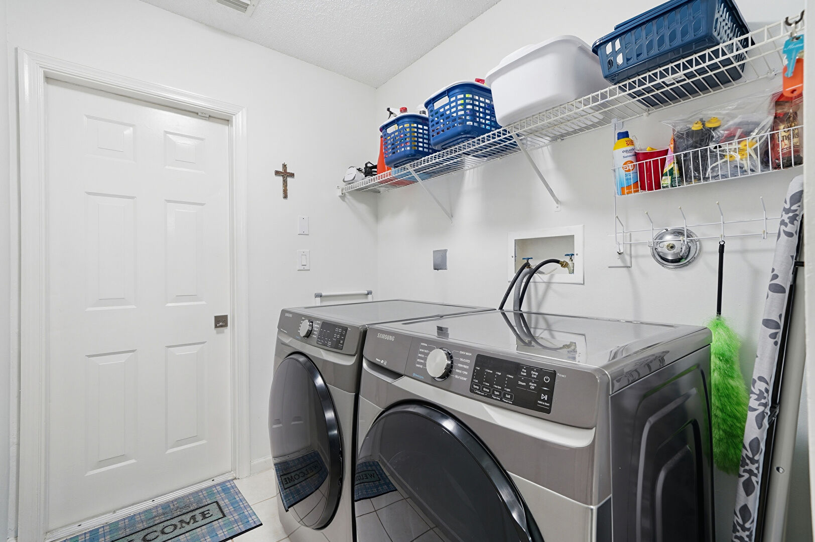 Drywall, Laundry, Textured Ceiling, Washer Hookup, Tile Floor