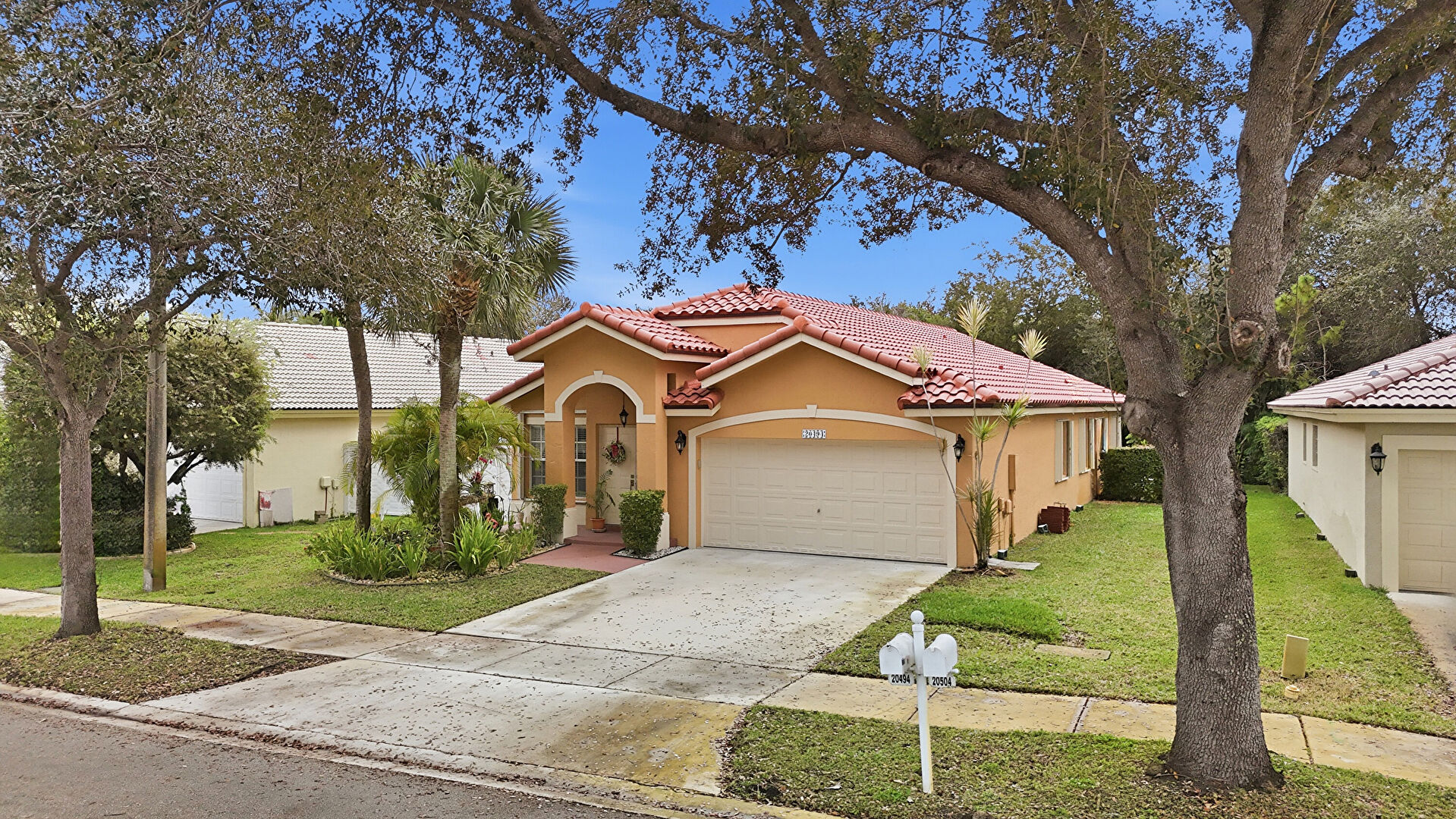 Driveway, Fence, Lawn, Stucco Siding, Tile Roof, Water Meter, Driveway, Stucco Siding