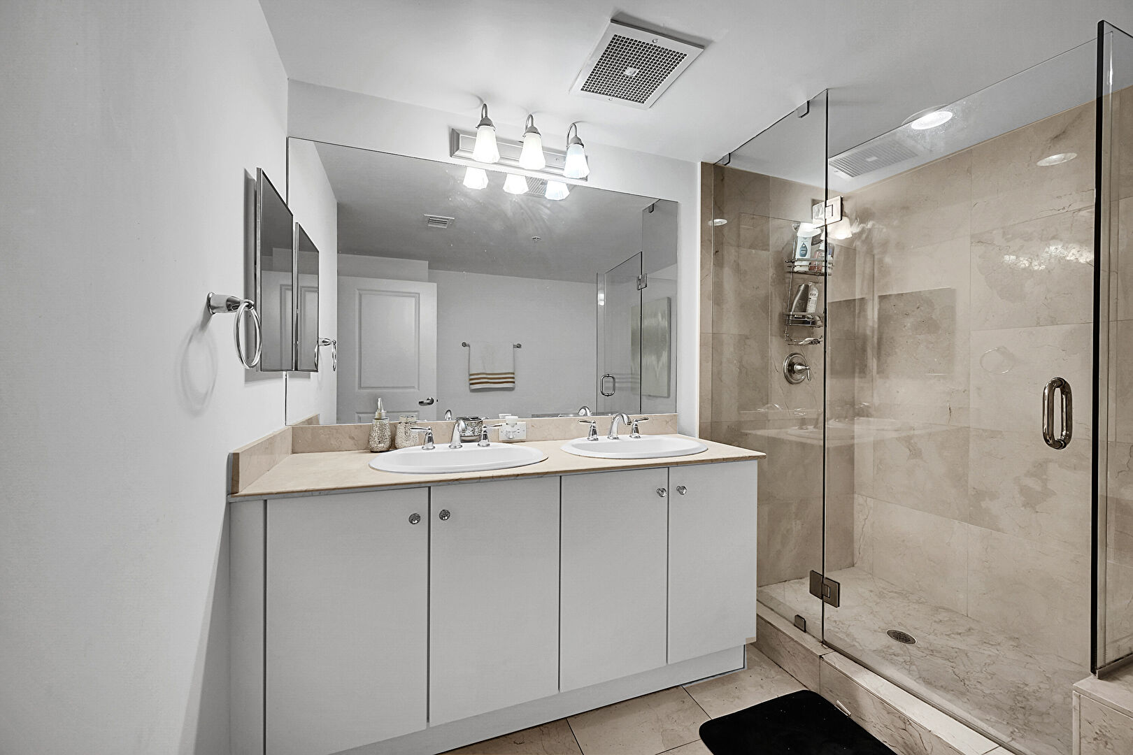 Drywall, Full Bathroom, Pendent Fire Sprinkler, Tile Floor, Vent, Double Vanity, Vanity