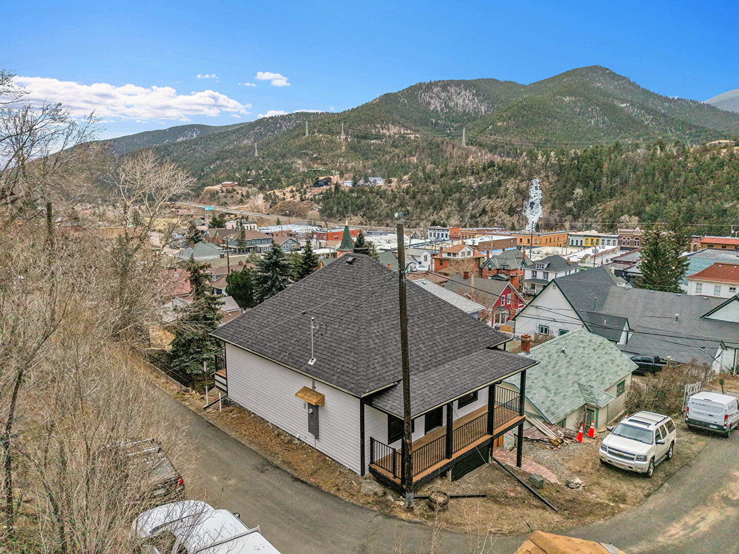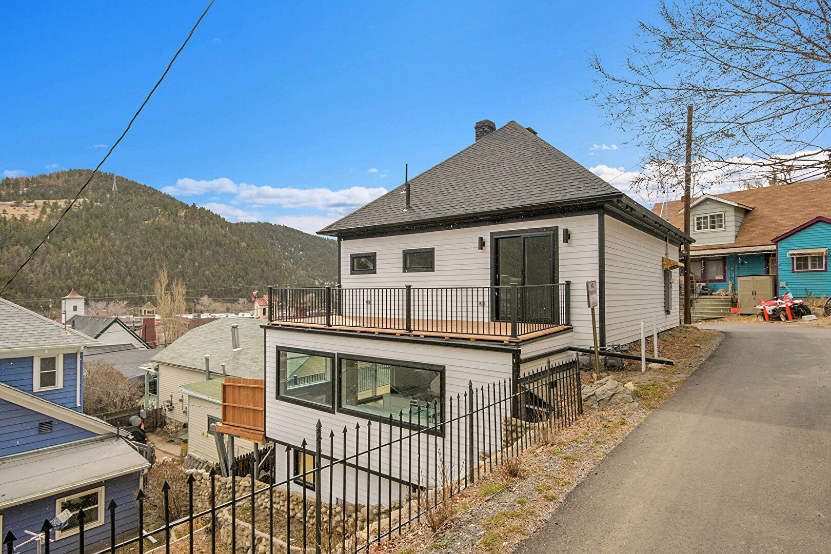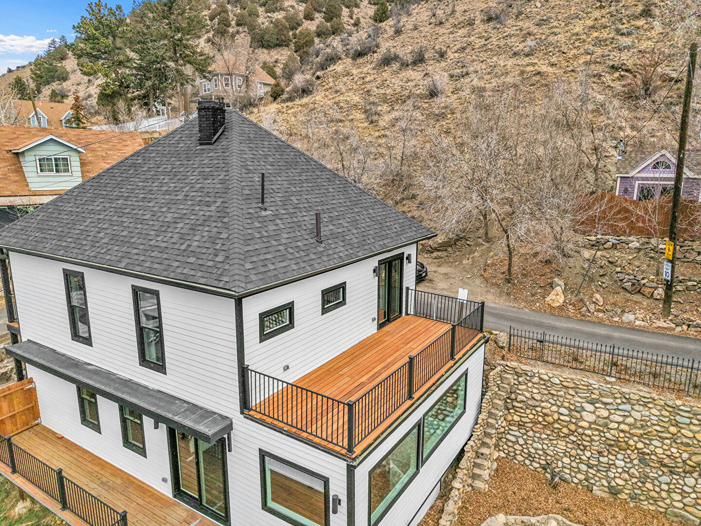 Balcony, Chimney, Downspout, Fence, Garage, Horizontal Siding, Mountain View, Patio, Porch, Shingle Roof, Deck, Horizontal Siding, Shingle Roof