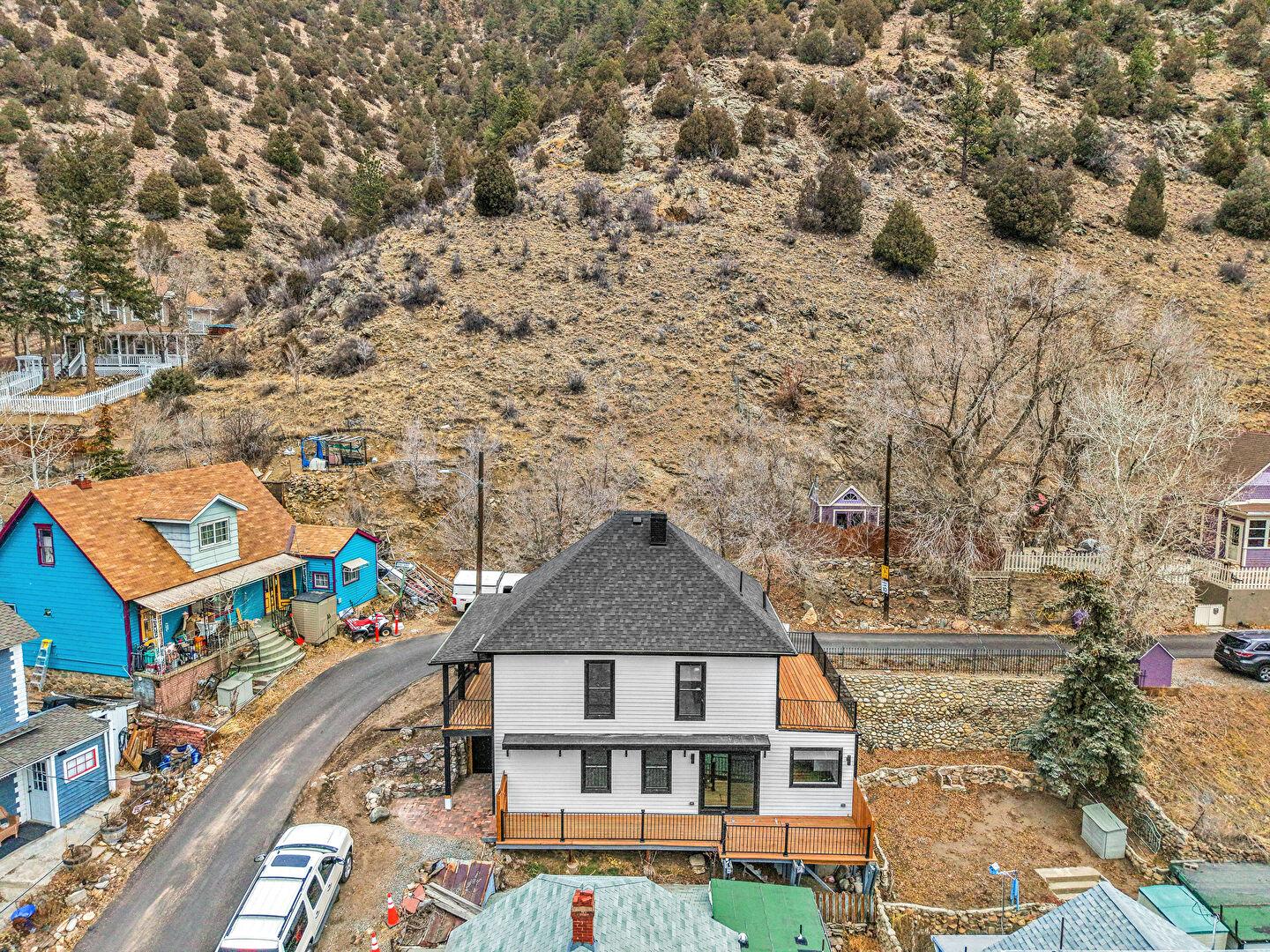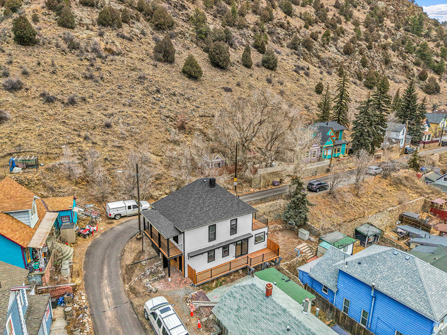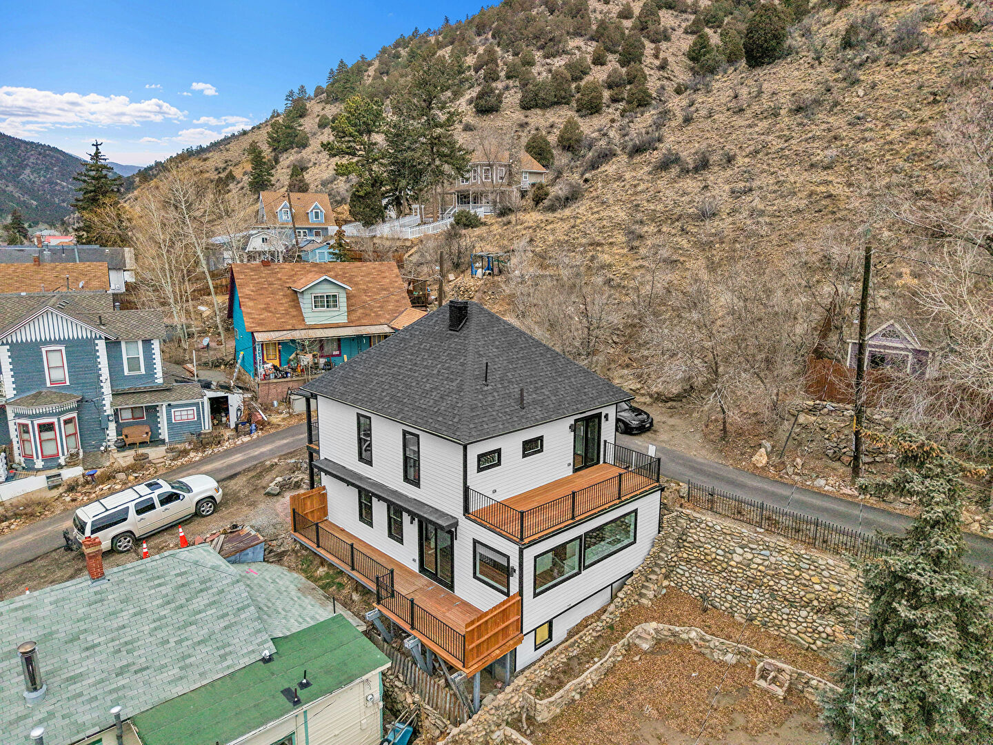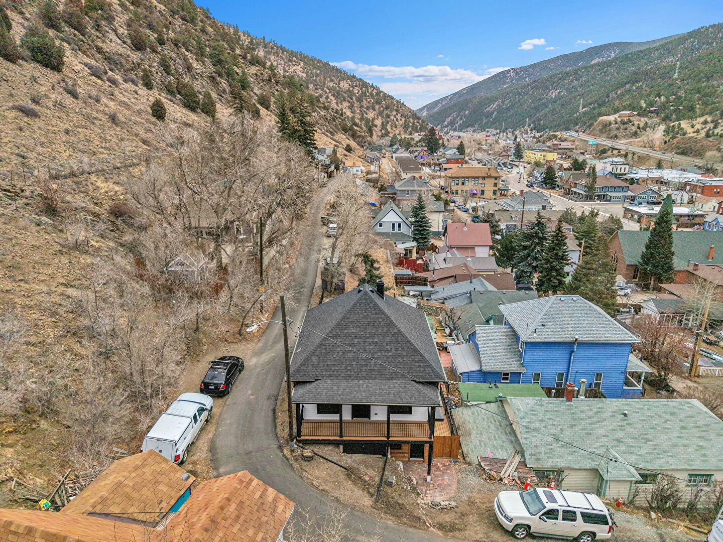 Balcony, Chimney, Downspout, Fence, Garage, Horizontal Siding, Mountain View, Patio, Porch, Shingle Roof, Deck, Horizontal Siding, Shingle Roof