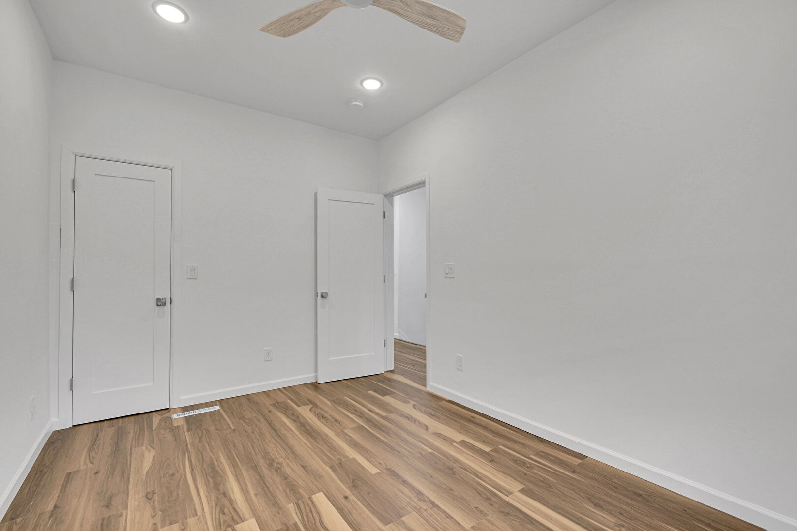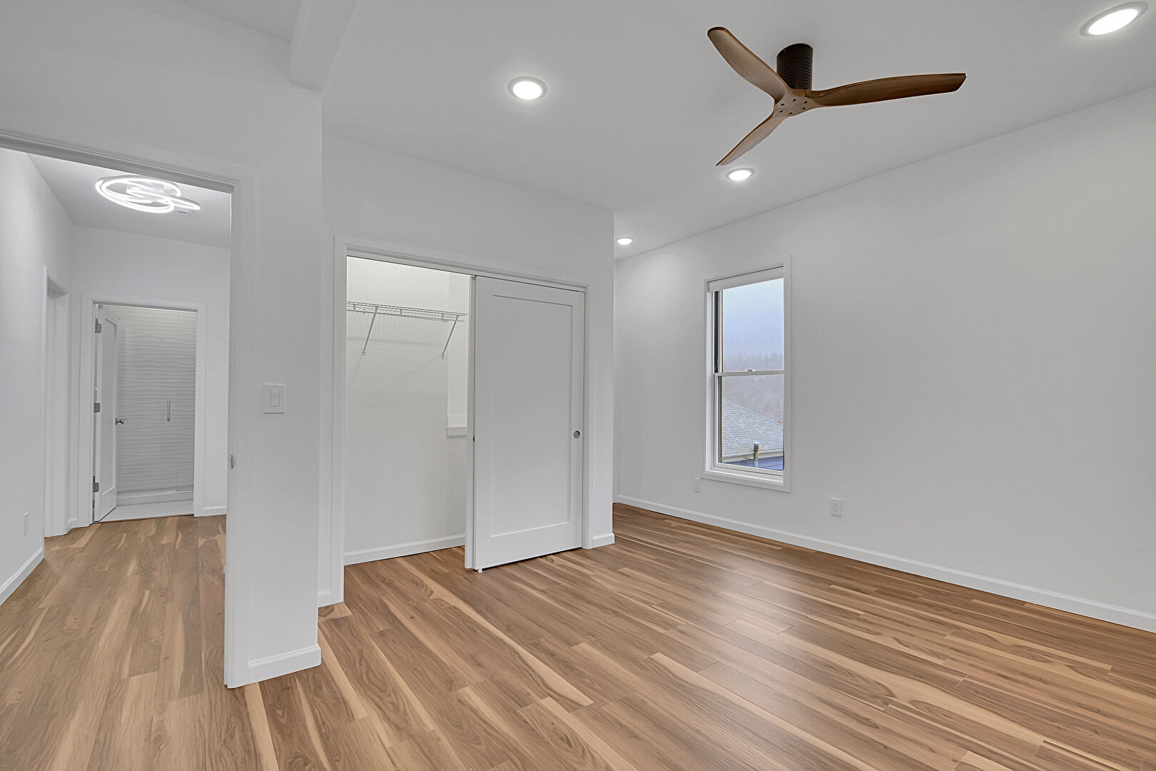 Baseboards Wall, Ceiling Fan, Closet, Drywall, Ensuite Bathroom, Natural Light, Recessed Lighting, Vent, Wood Finish Floor, Baseboards Wall, Drywall, Recessed Lighting, Vent, Wood Finish Floor