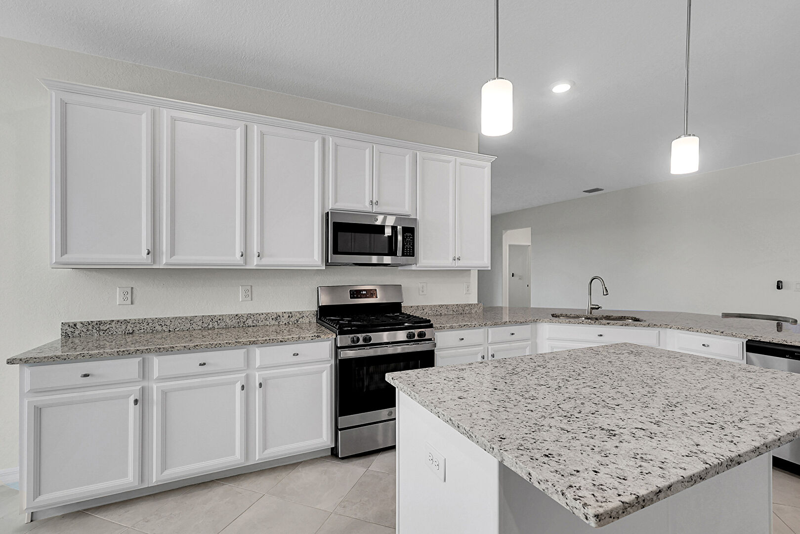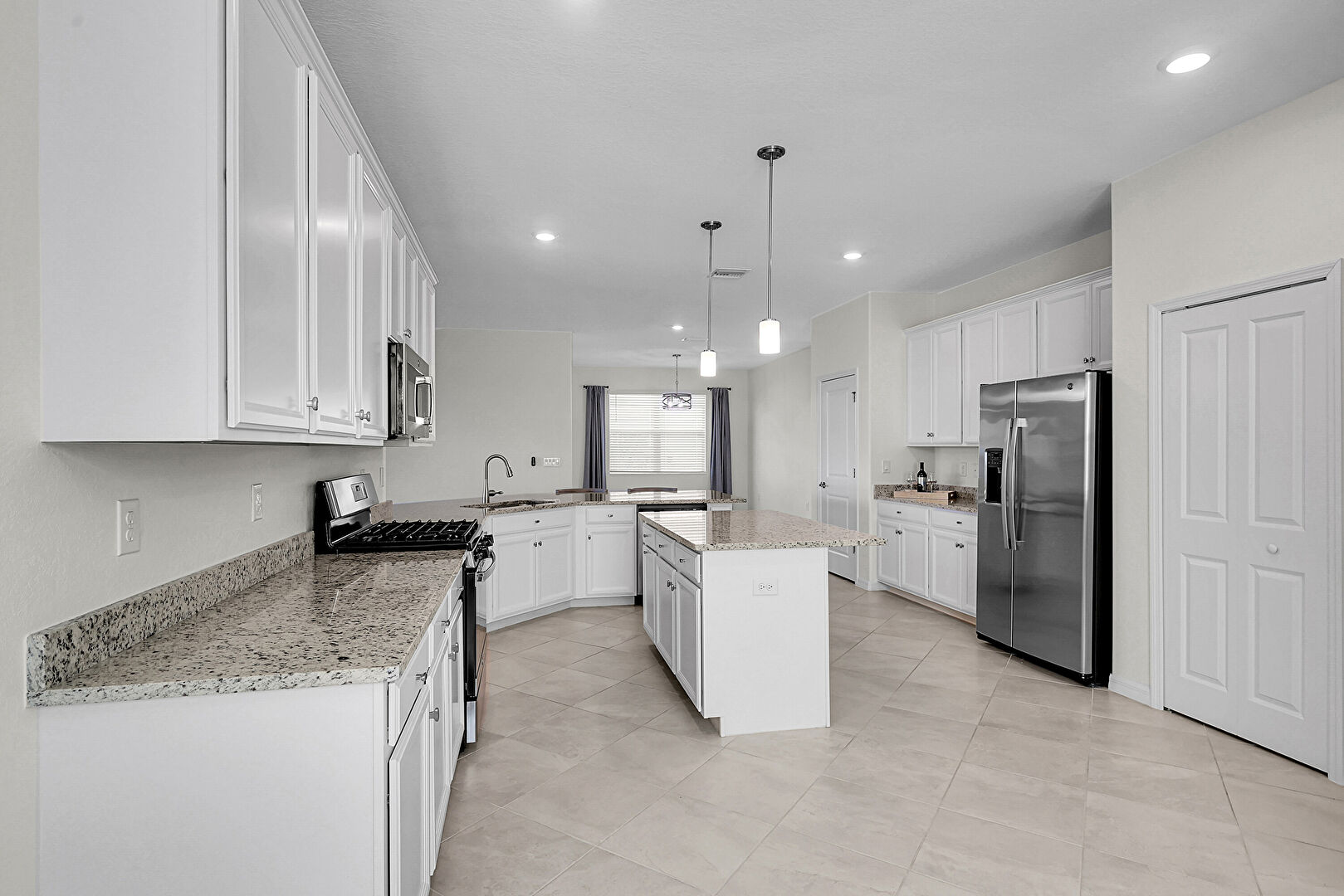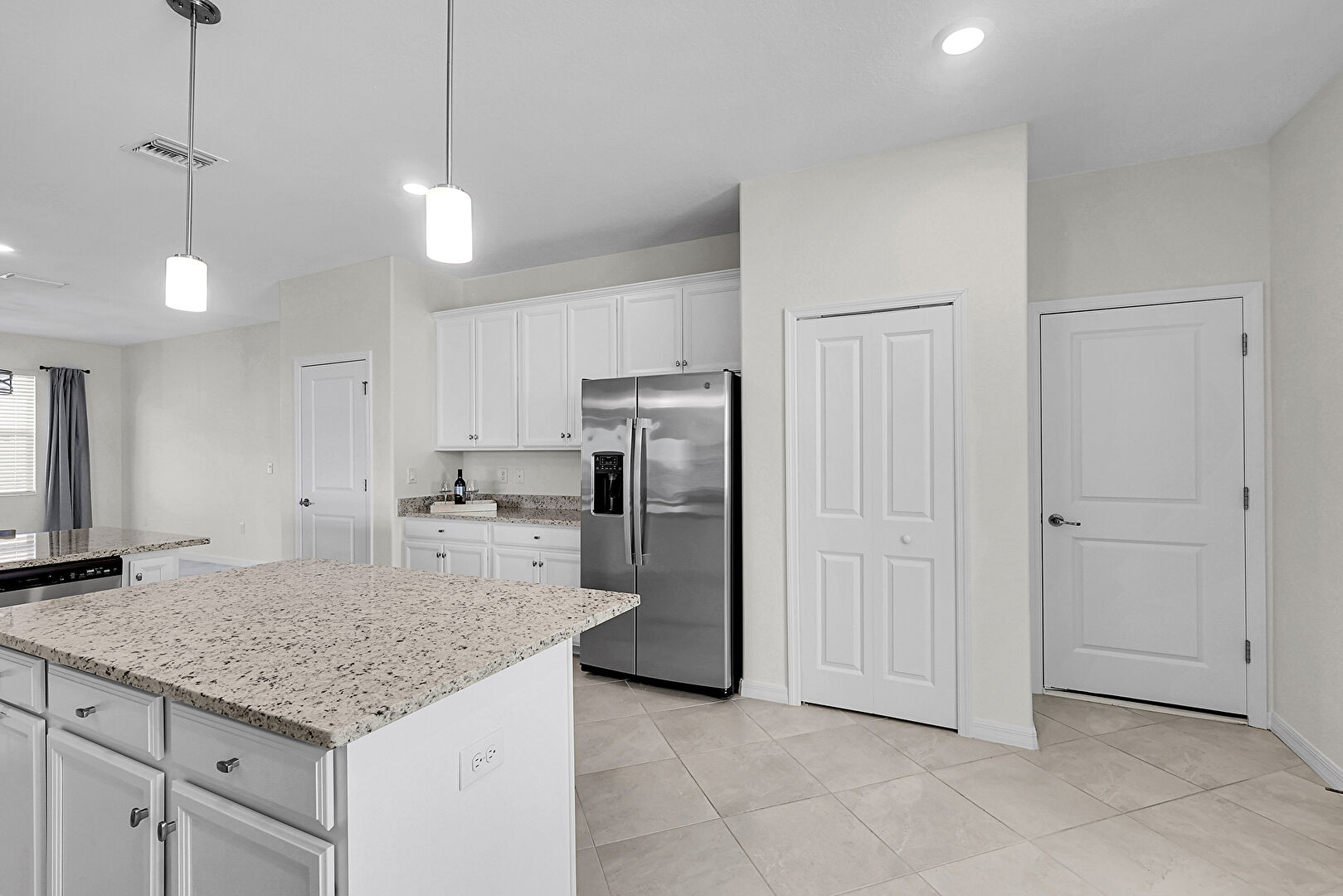 Baseboards Wall, Ceiling Fan, Crown Molding Cabinets, Drywall, Kitchen Bar, Kitchen Island, Kitchen Peninsula, Laundry, Natural Light, Opens To Living Area, Pendant Lighting, Recessed Lighting, Shaker Cabinets, Stone Countertops, Tile Floor, U Shaped Kitchen, Vent, Washer Dryer, Kitchen Peninsula, Natural Light, Opens To Living Area, Shaker Cabinets, Stone Countertops, Tile Floor