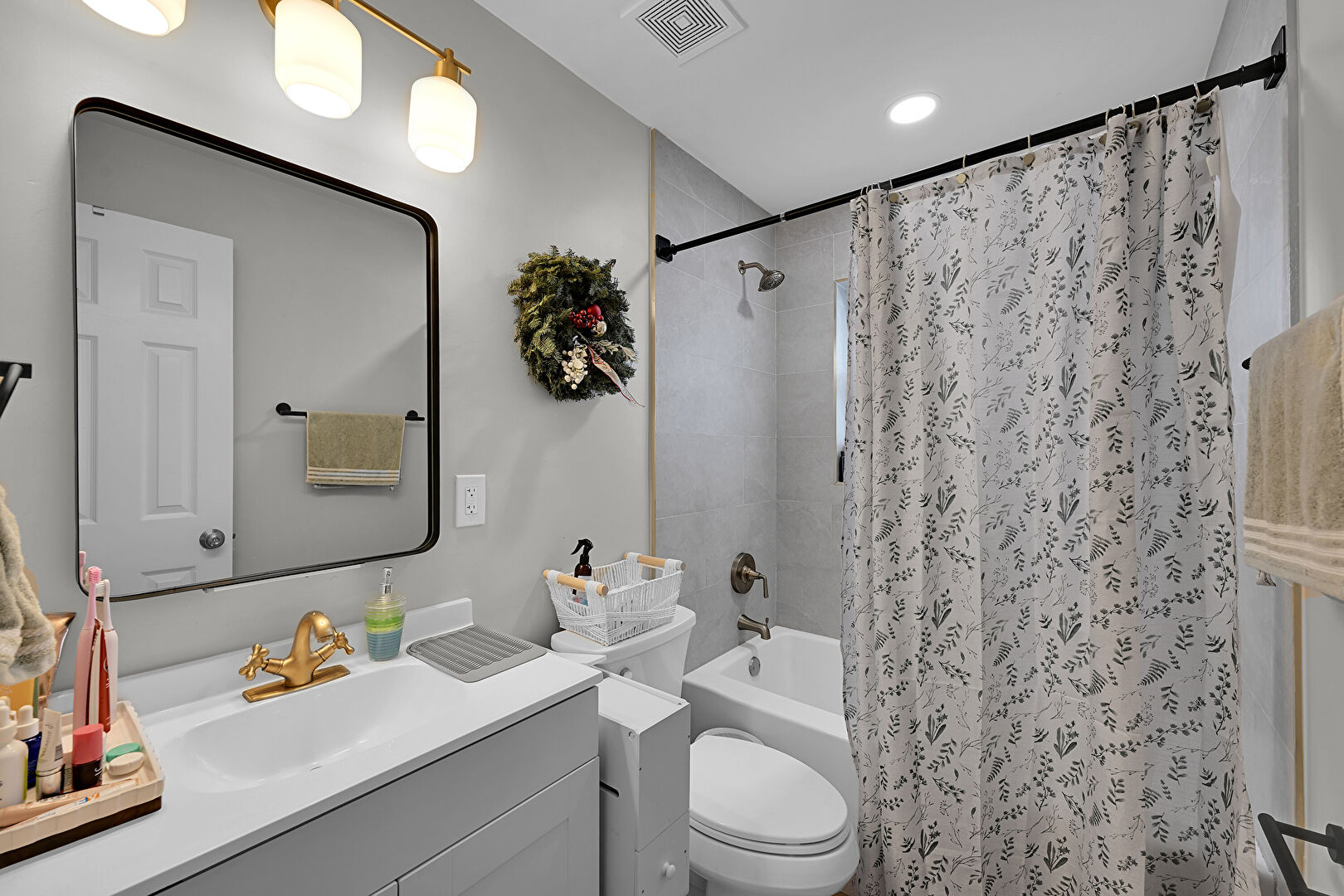 Baseboards Wall, Drywall, Full Bathroom, Recessed Lighting, Vanity, Vent, Combined Bath Shower, Full Bathroom