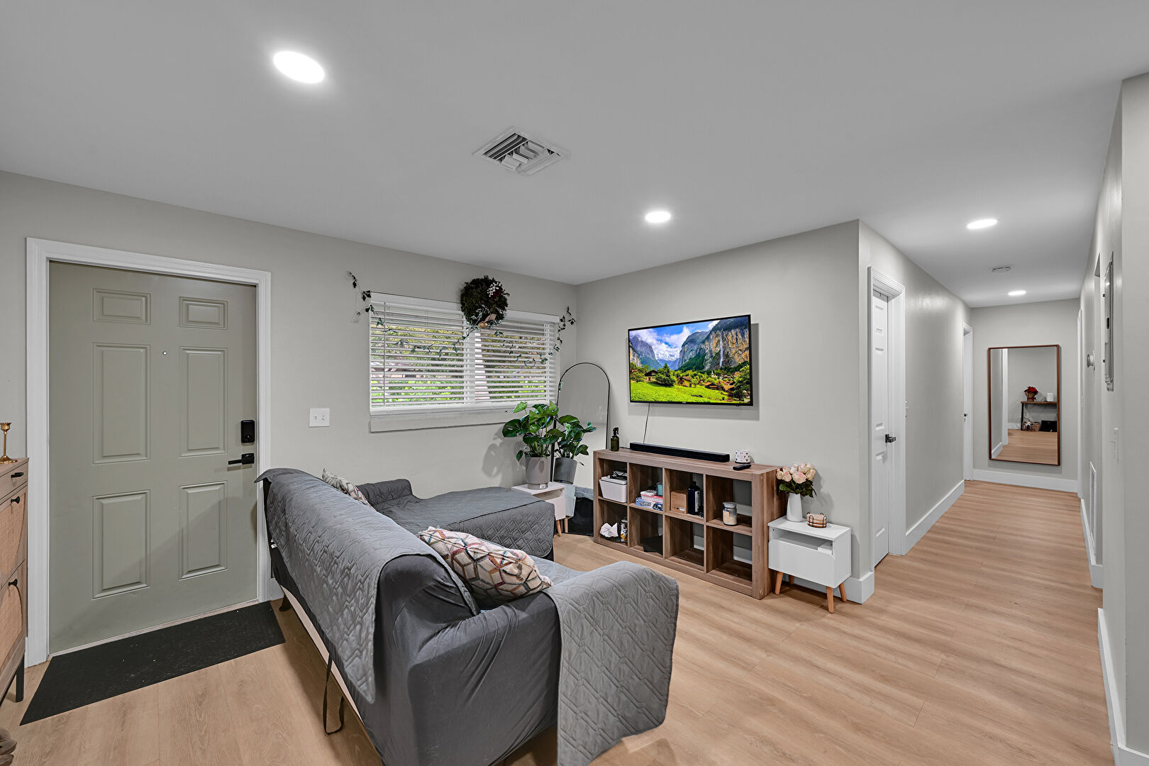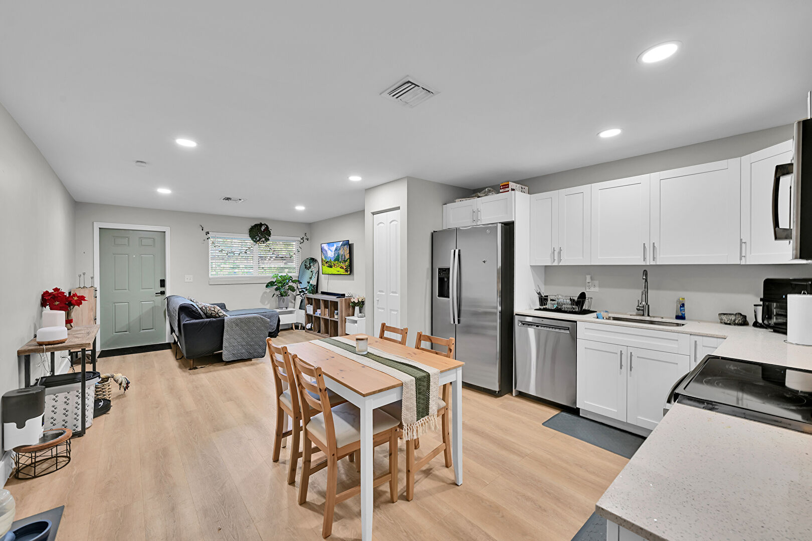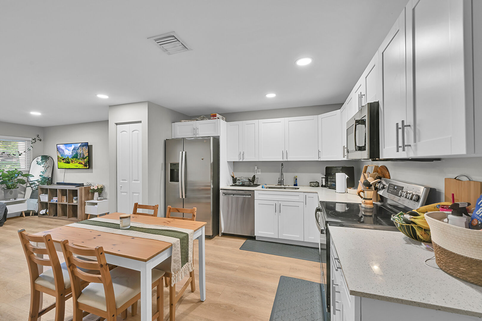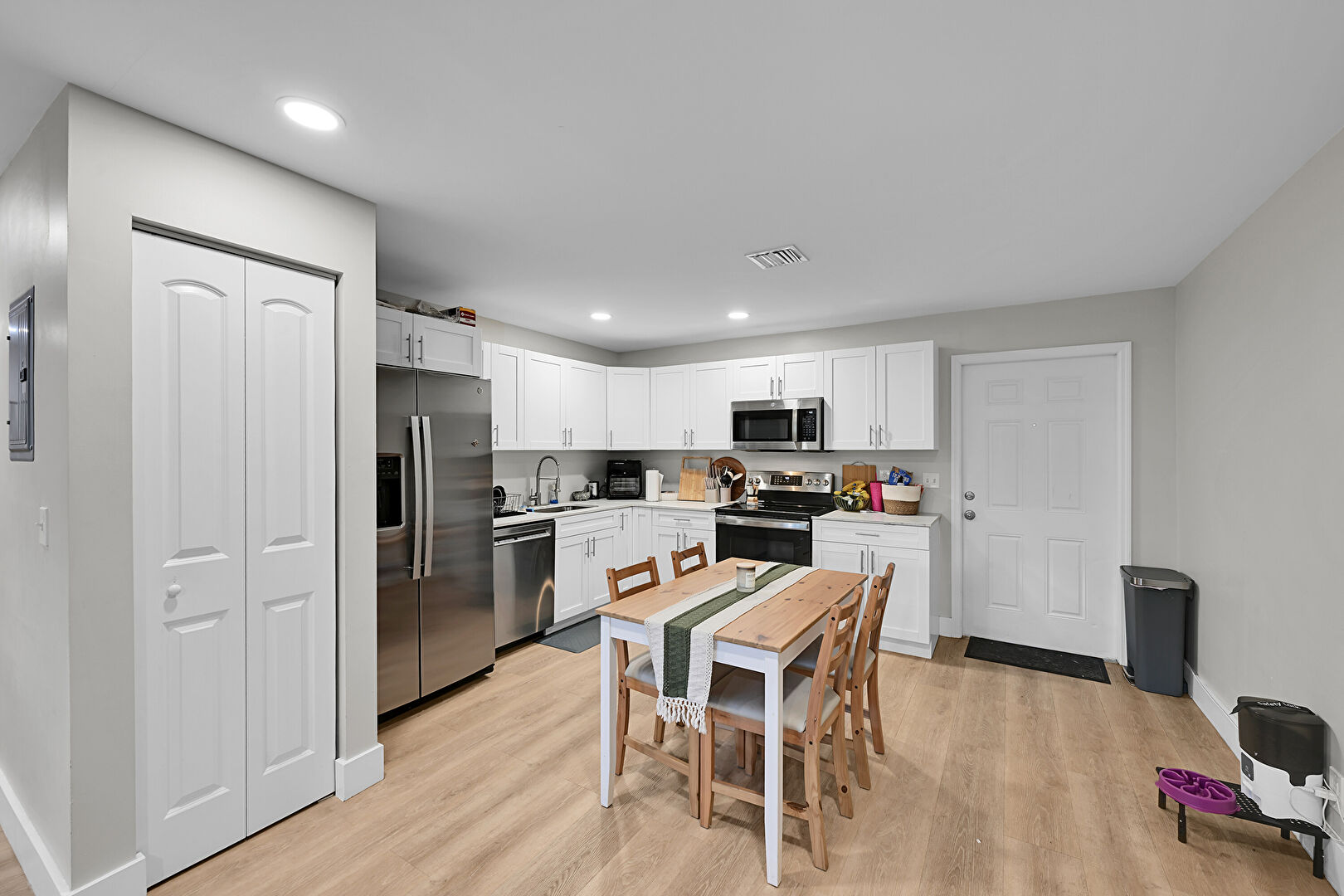 Baseboards Wall, Drywall, Electric Panel, Natural Light, Recessed Lighting, Vent, Wood Finish Floor, L Shaped Kitchen, Natural Light, Wood Finish Floor