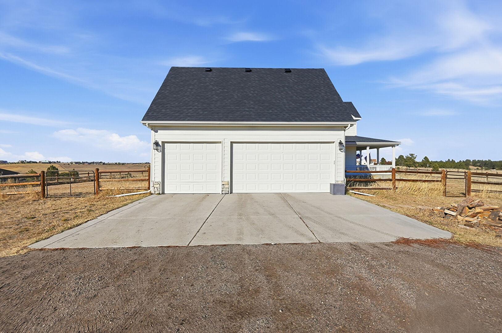 Downspout, Driveway, Fence, Gate, Gutters, Horizontal Siding, Porch, Propane Tank, Rural View, Shingle Roof, Driveway, Shingle Roof