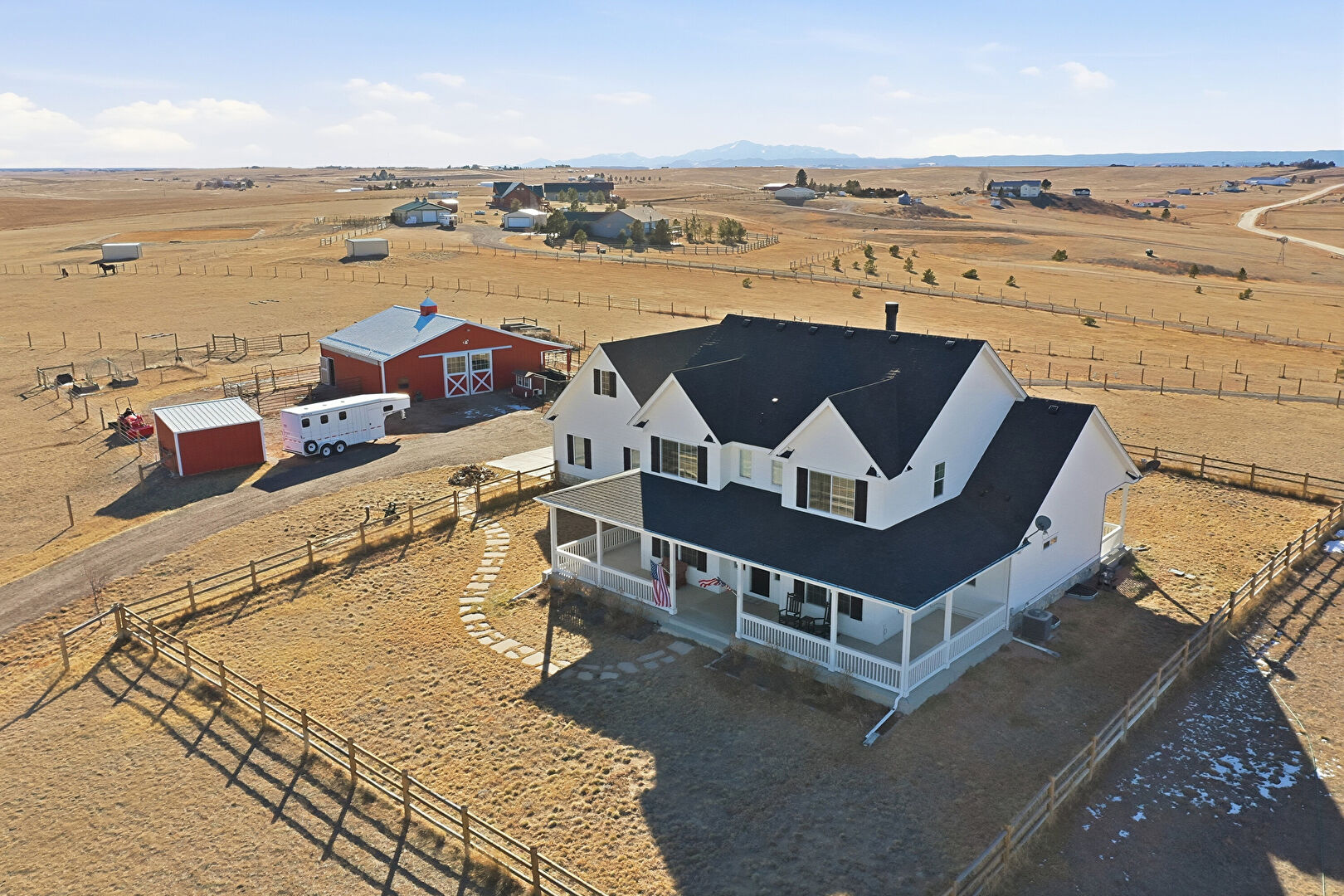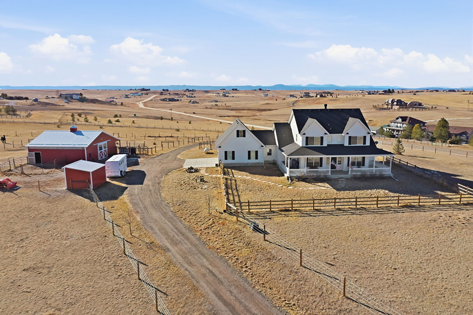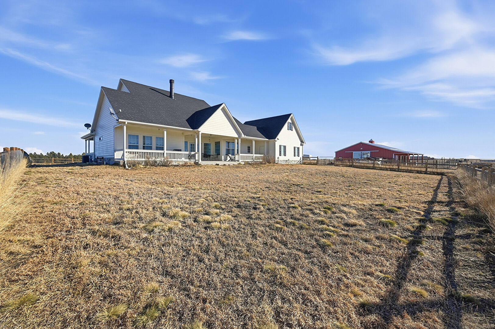 Central Ac, Detached Garage, Dormer Roof, Downspout, Fence, Gutters, Horizontal Siding, Lawn, Outdoor Structure, Pole Building, Porch, Rural View, Satellite Dish, Shingle Roof, Stucco Siding, Driveway, Fence, Lawn, Porch