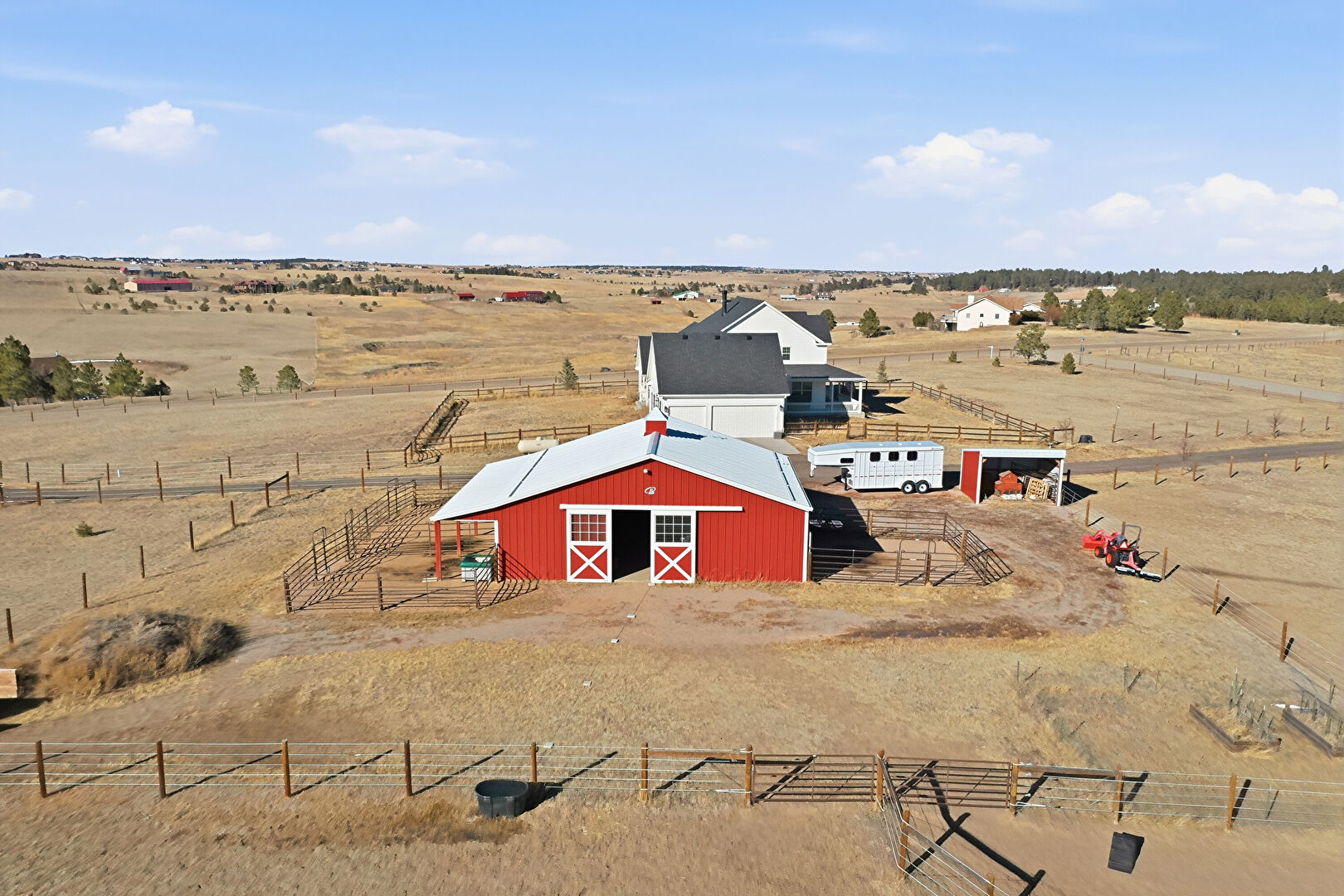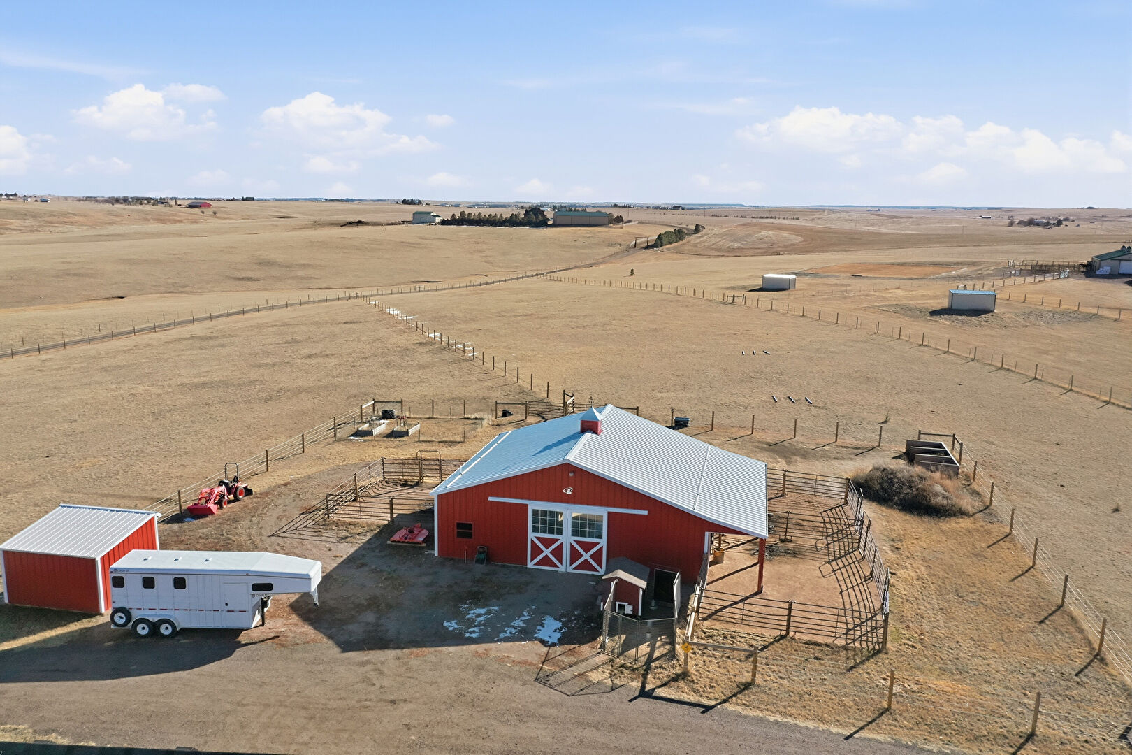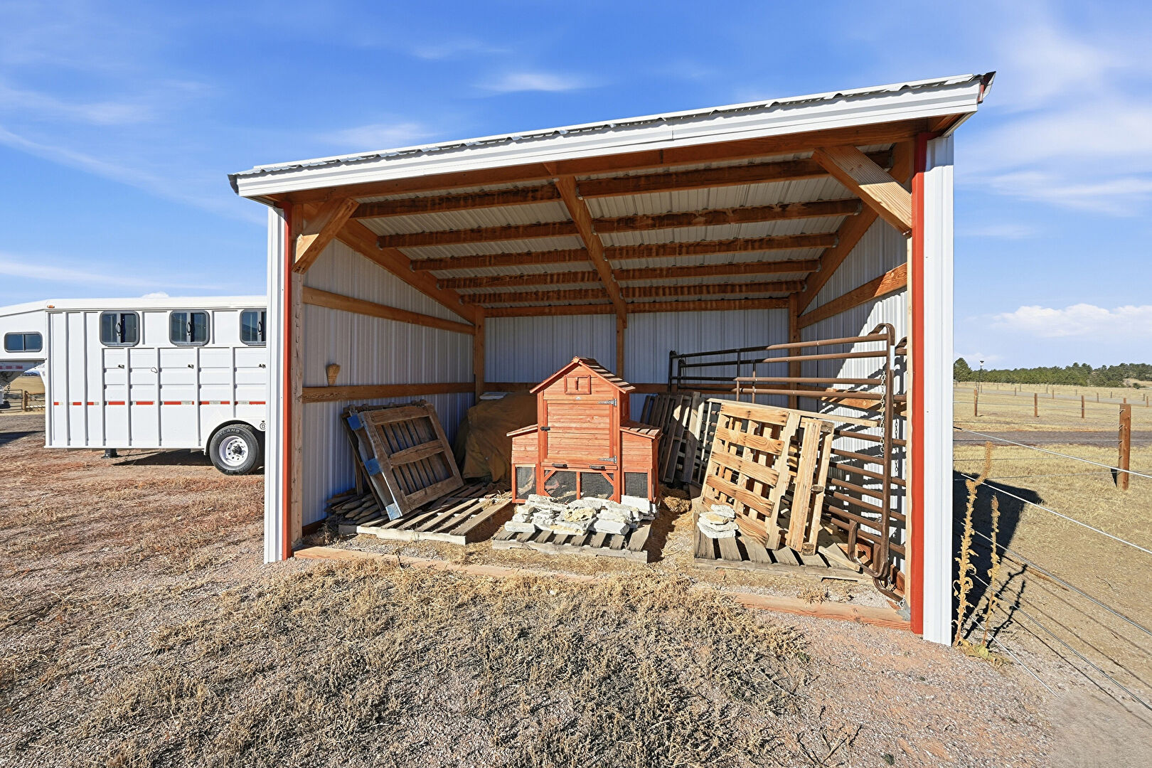 Detached Garage, Fence, Lawn, Outdoor Structure, Pole Building, Rural View, Rv Carport, Split Ac Unit, Stable, Fence, Outdoor Structure, Pole Building, Stable