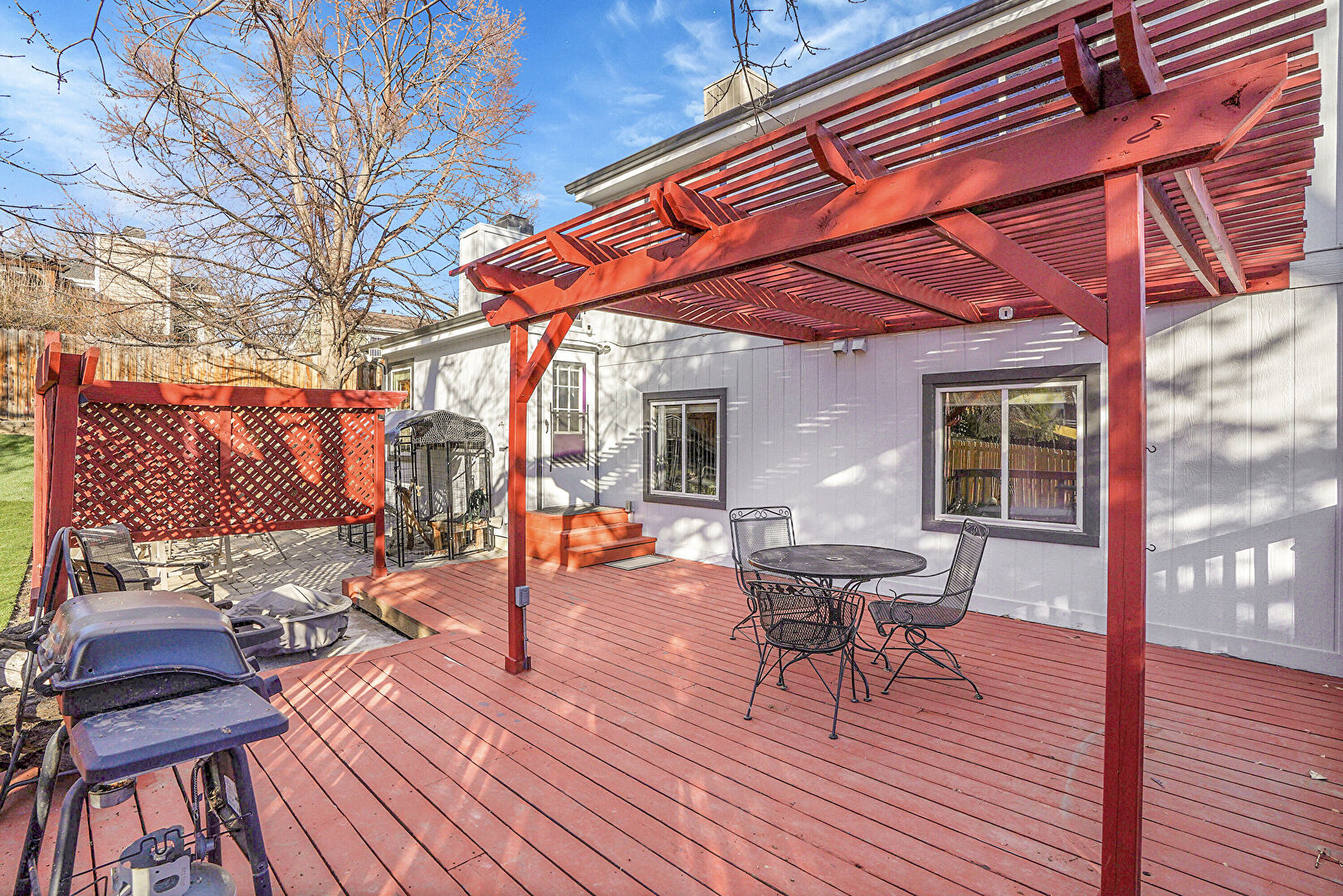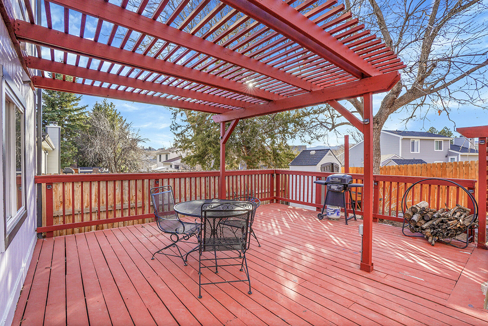 Deck, Fence, Fire Pit, Grill, Outdoor Dining Area, Outdoor Structure, Pergola, Deck, Fence