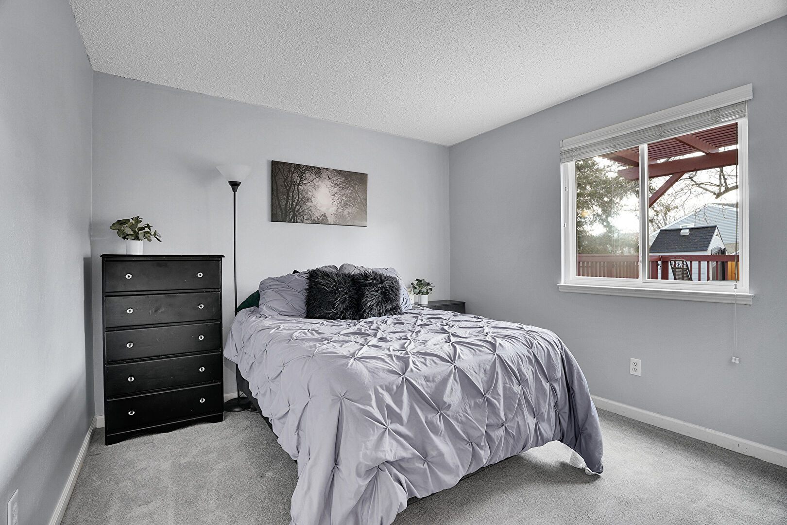 Baseboards Wall, Drywall, Natural Light, Textured Ceiling, Carpet