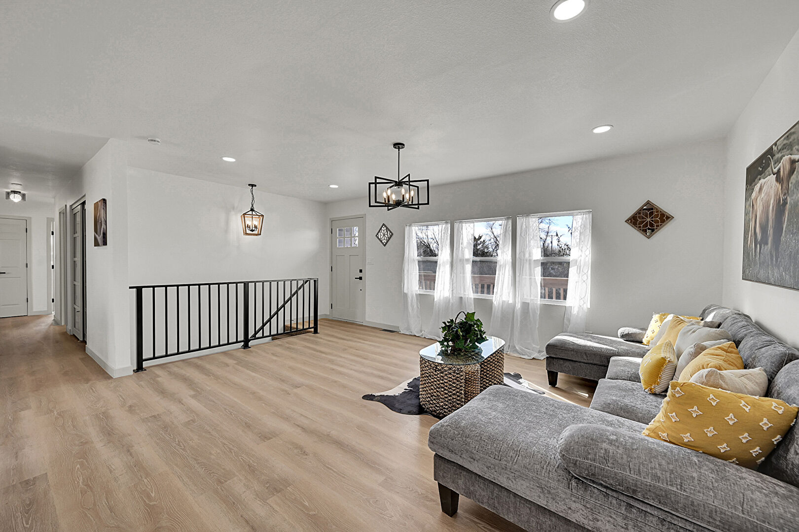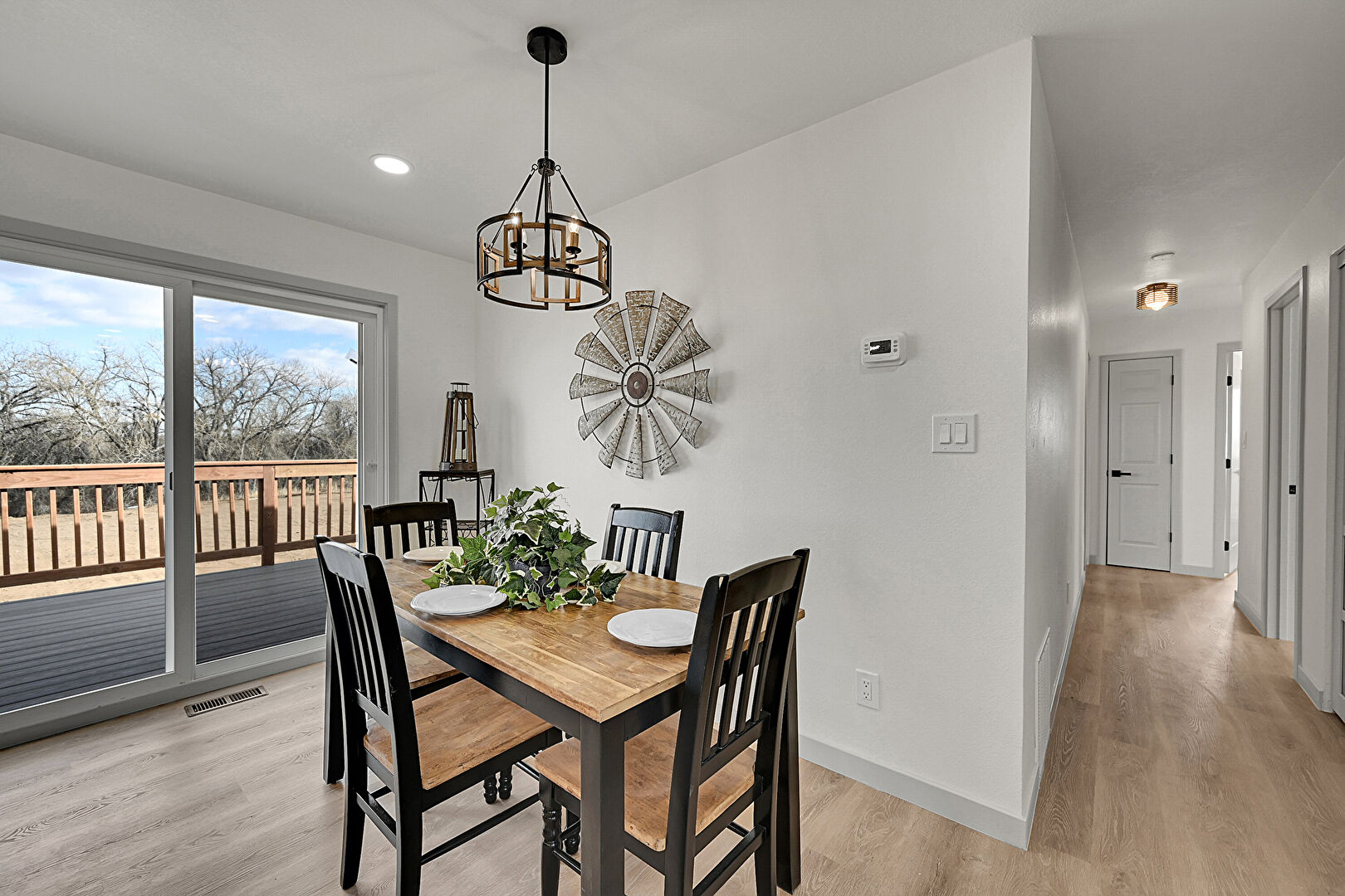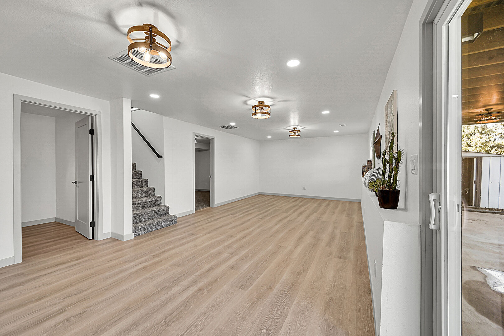 Baseboards Wall, Drywall, Natural Light, Notable Chandelier, Recessed Lighting, Wood Finish Floor, Vent