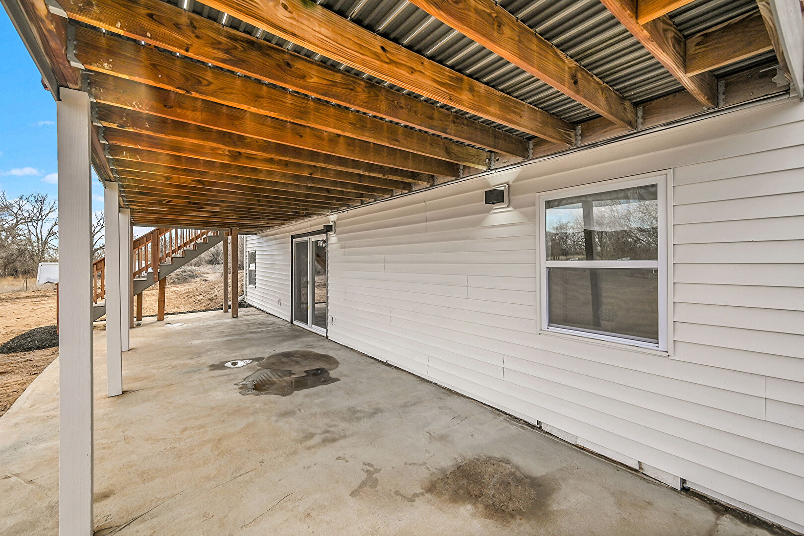 Basement Walk Out, Deck, Downspout, Gutters, Horizontal Siding, Outdoor Structure, Shed, Stairs, Patio