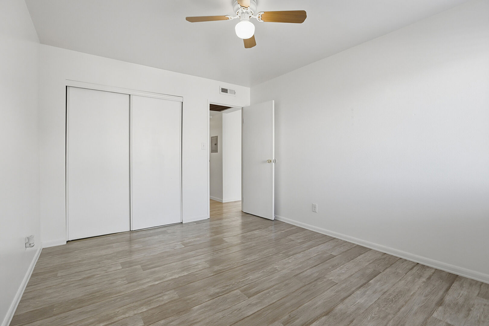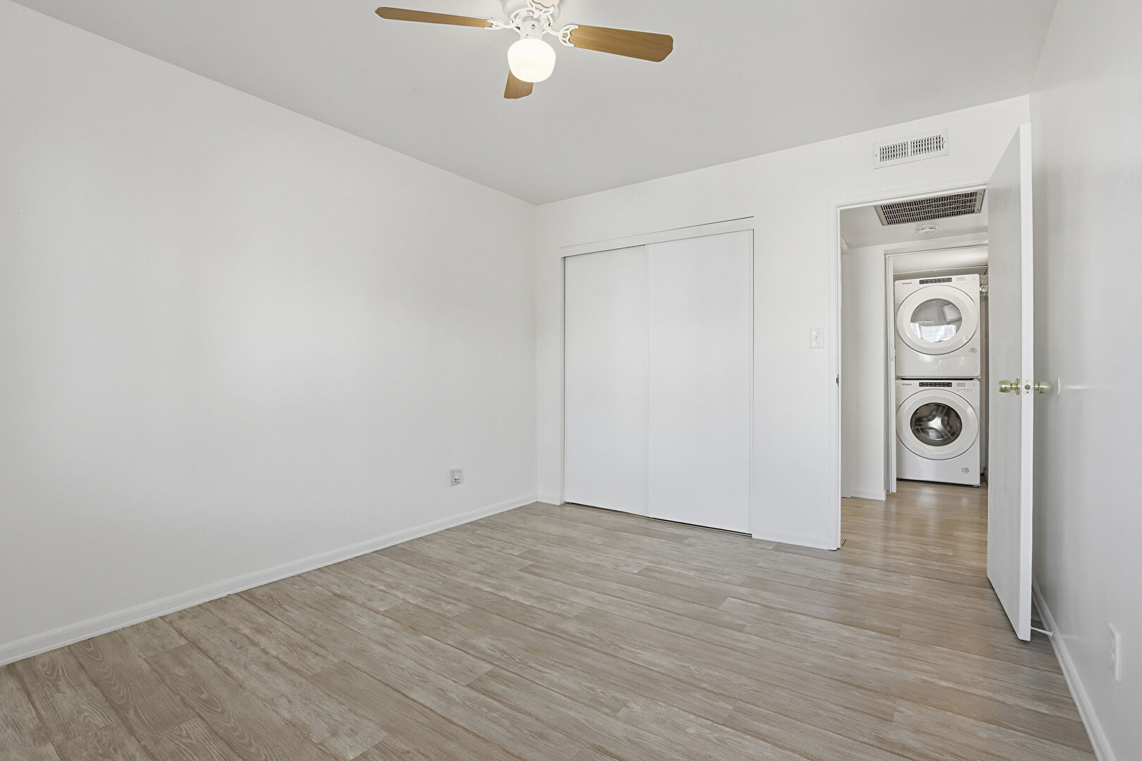 Baseboards Wall, Ceiling Fan, Closet, Drywall, Laundry, Natural Light, Vent, Wood Finish Floor, Ceiling Fan, Closet, Wood Finish Floor