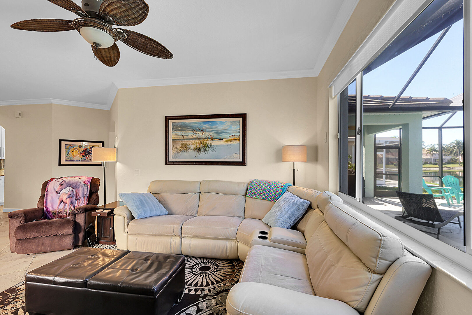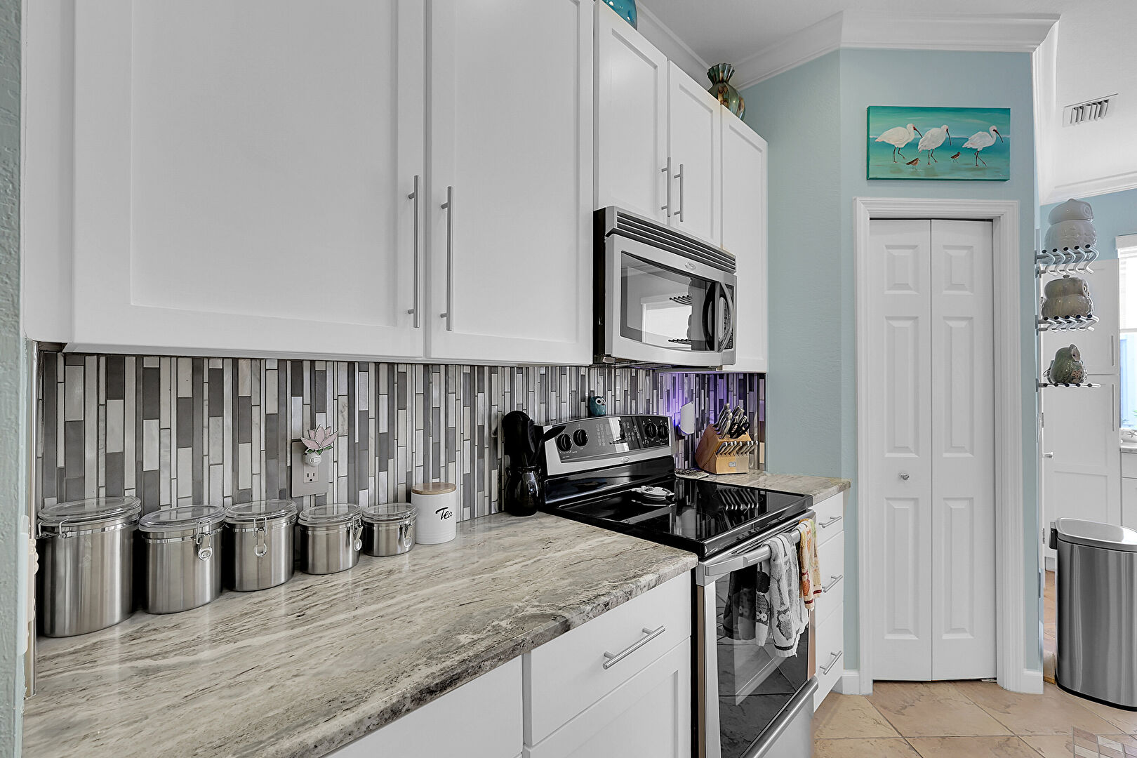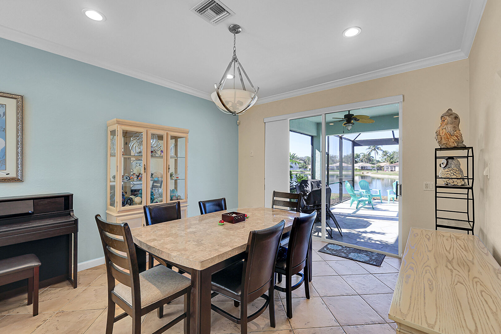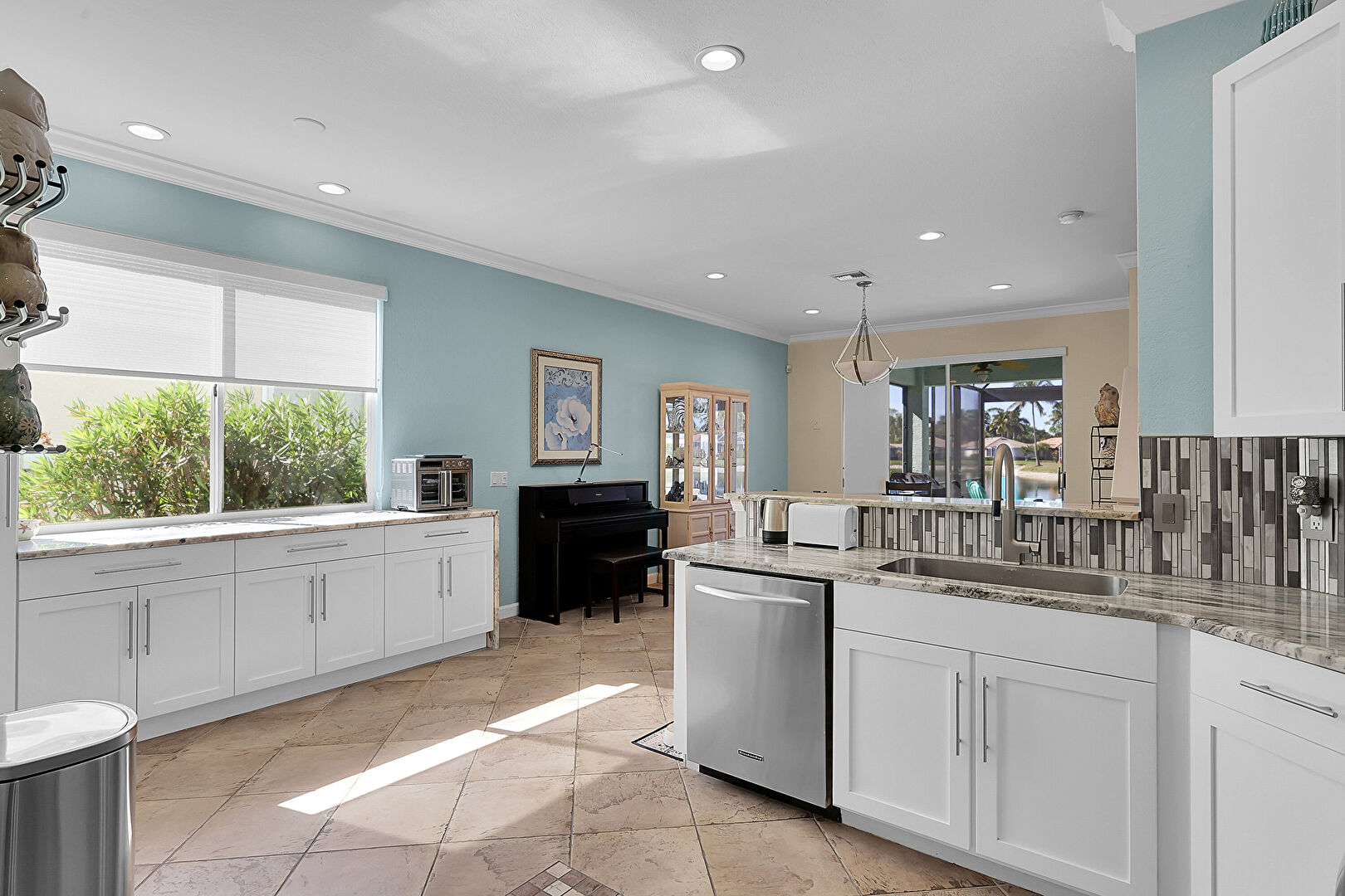 Arched Walkways, Baseboards Wall, Ceiling Fan, Crown Molding, Drywall, Natural Light, Recessed Lighting, Stairs, Sunroom, Tile Floor, U Shaped Kitchen, Vent, Water View, Waterfront, Baseboards Wall, Natural Light, Recessed Lighting, Vent