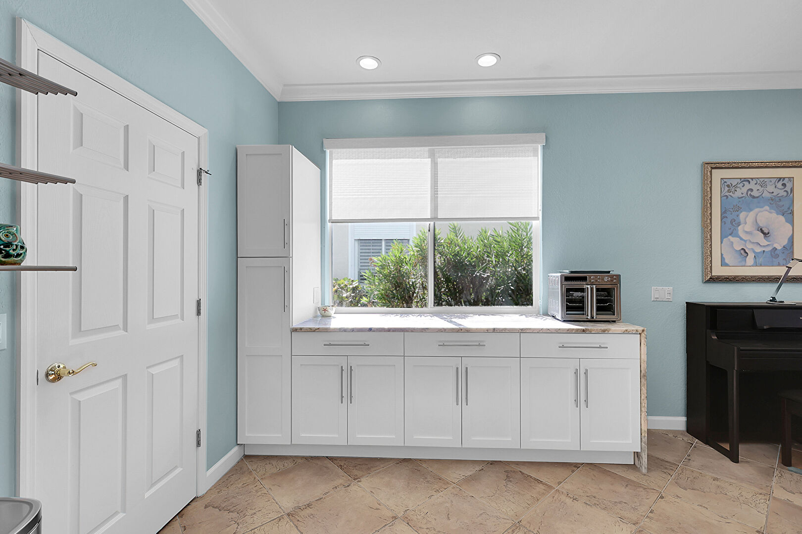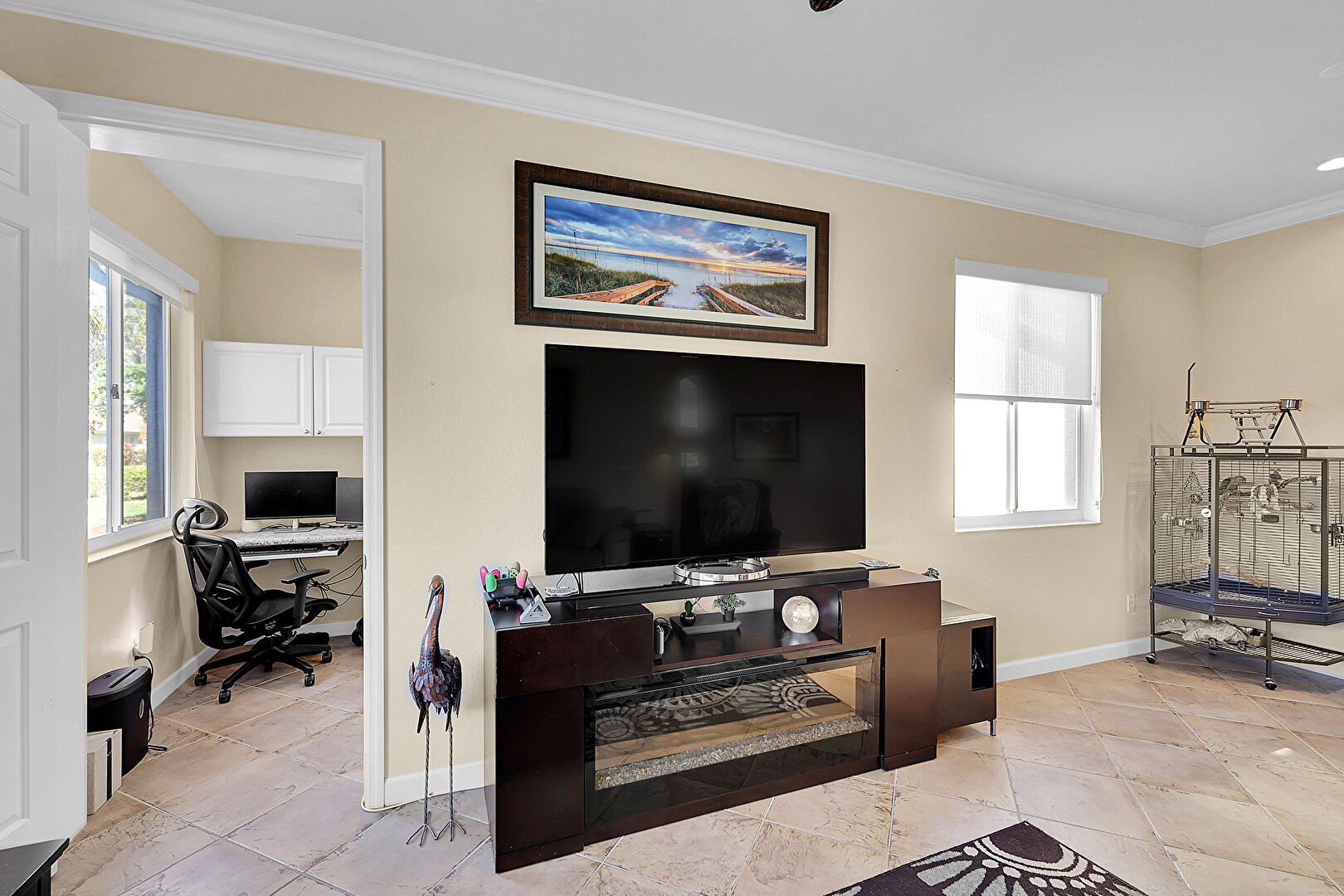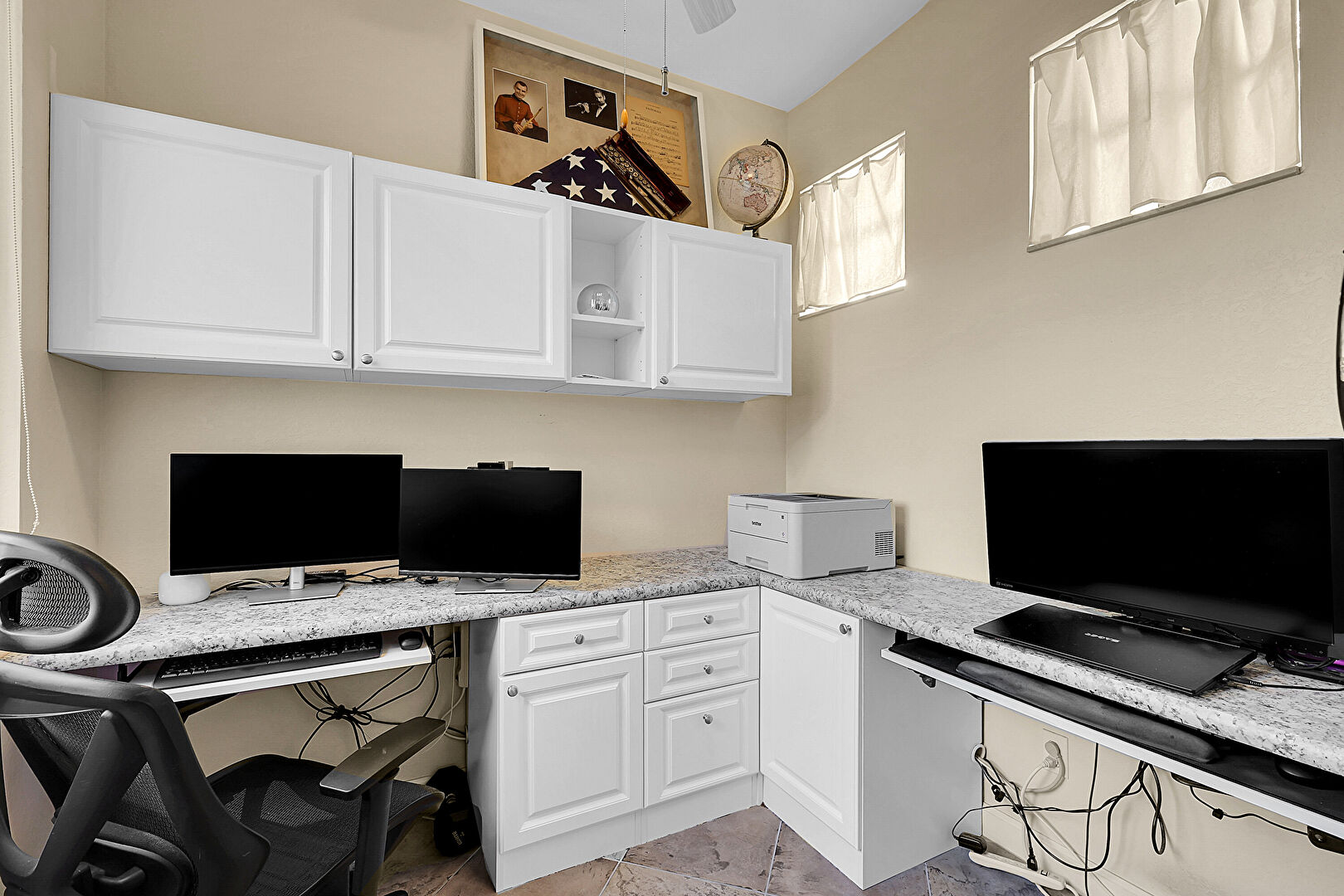 Arched Walkways, Baseboards Wall, Ceiling Fan, Crown Molding, Drywall, Natural Light, Office Area, Recessed Lighting, Sunroom, Tile Floor, Crown Molding, Natural Light, Tile Floor