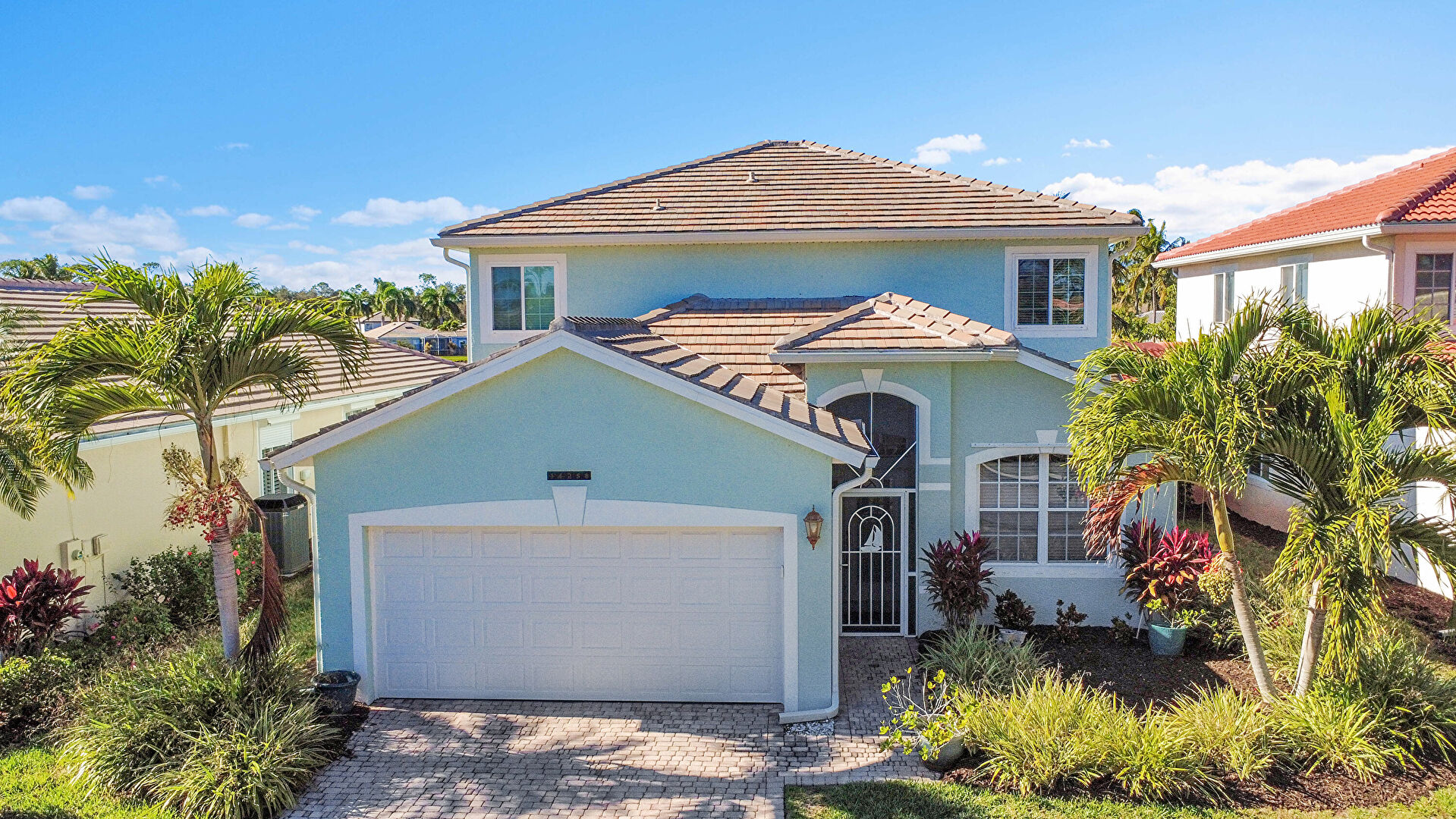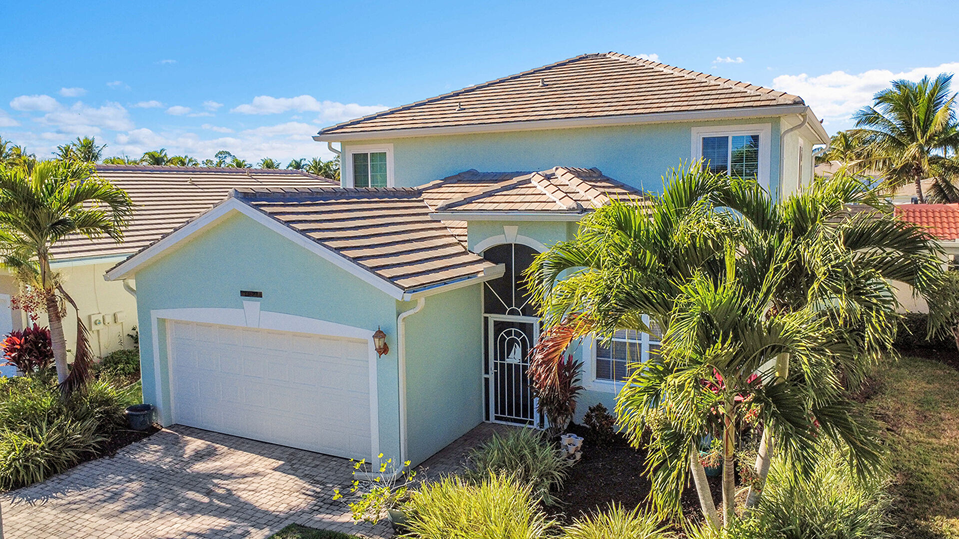 Downspout, Driveway, Gutters, Lawn, Pad Mount Transformer, Pergola, Residential View, Stucco Siding, Tile Roof, Water View, Central Ac, Downspout, Driveway, Gutters, Stucco Siding, Tile Roof