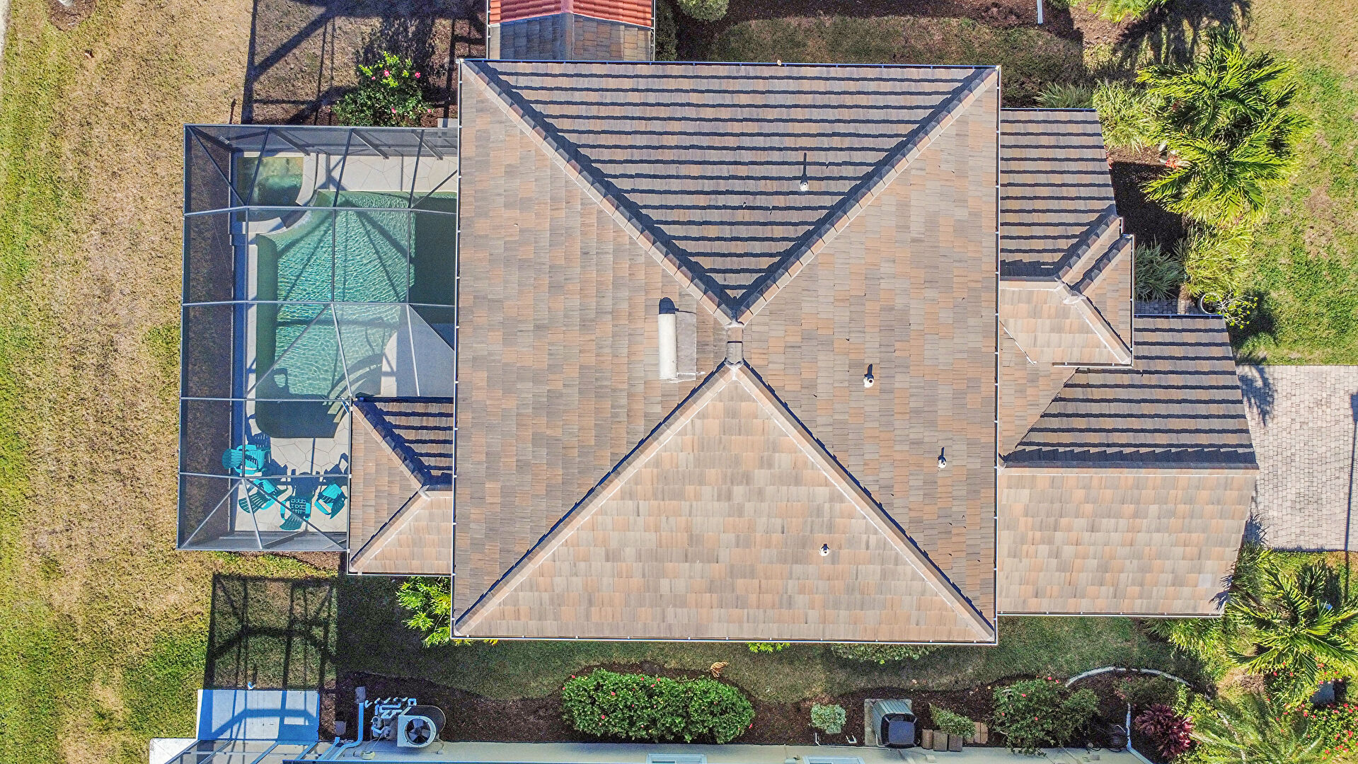 Central Ac, Downspout, Gutters, Handrail, Lanai, Lawn, Patio, Pool, Stucco Siding, Sunroom, Tile Roof, Pool, Stucco Siding