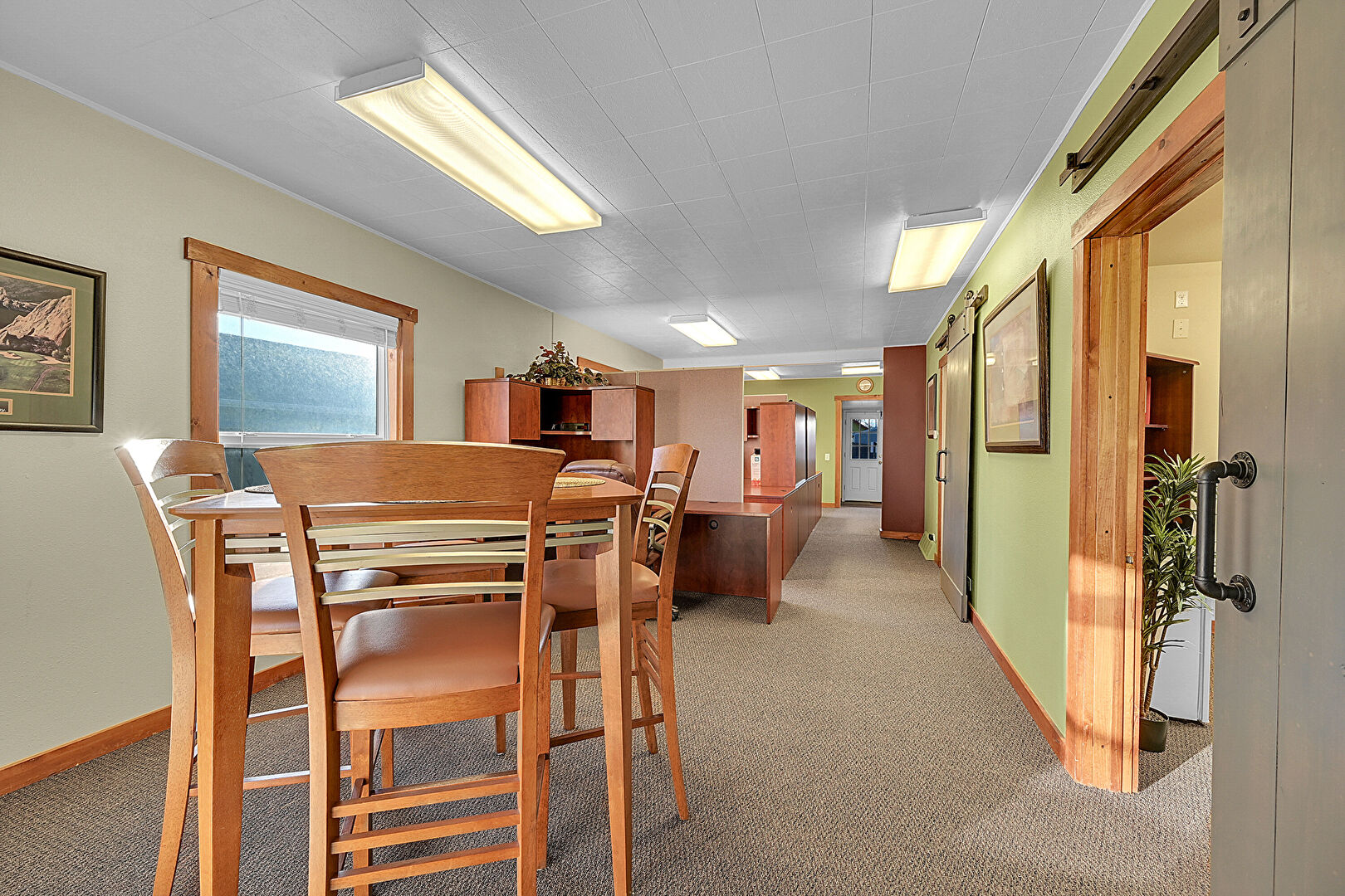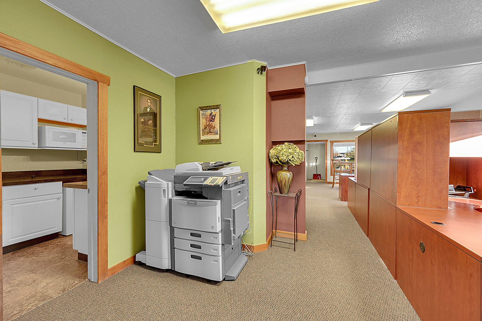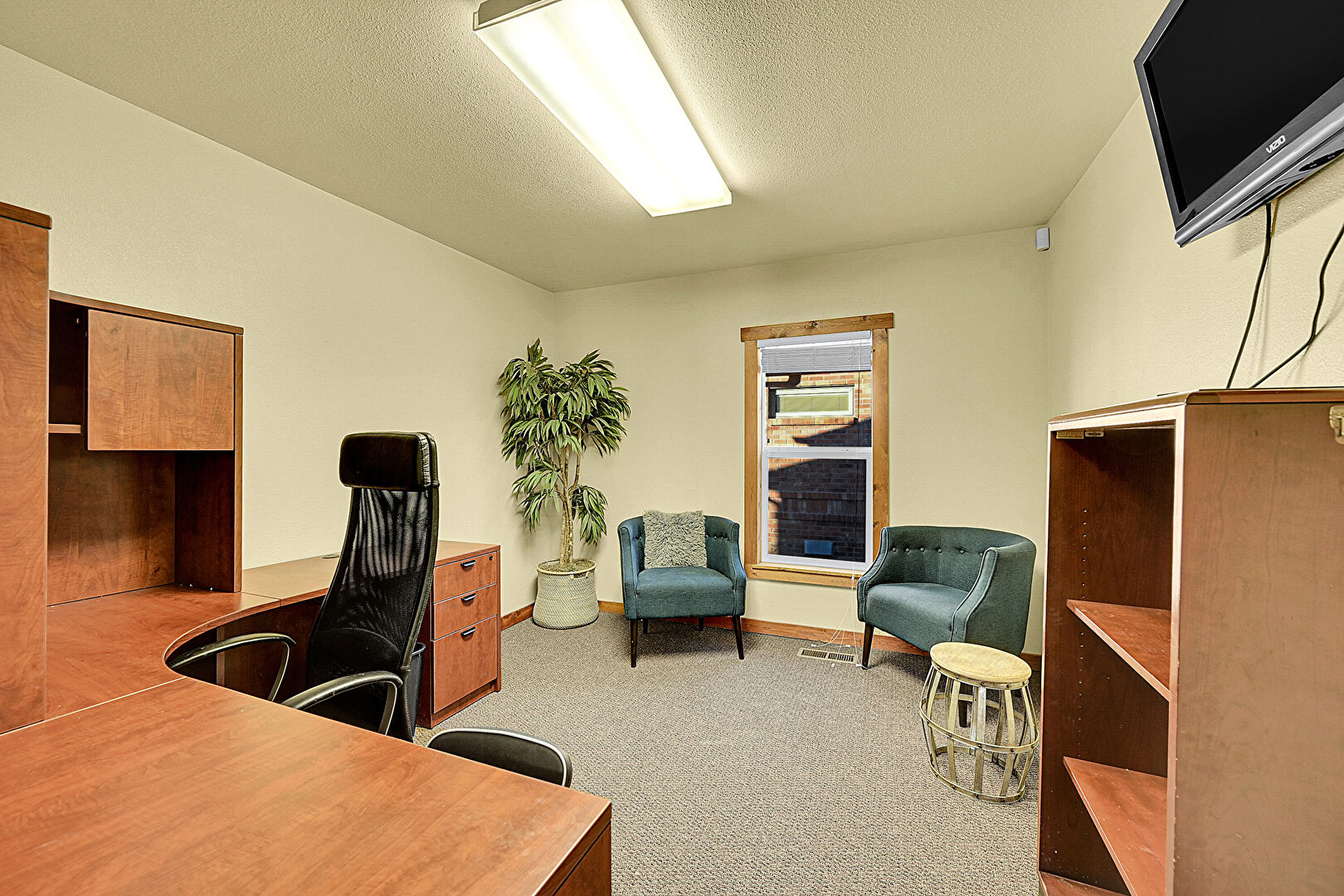 Baseboards Wall, Carpet, Drywall, Natural Light, Office Area, Vent, Baseboards Wall, Office Area, Textured Ceiling