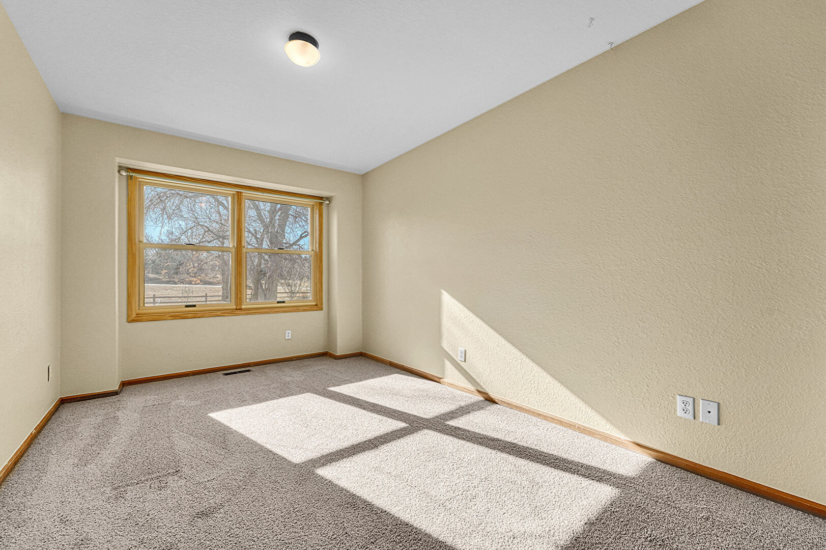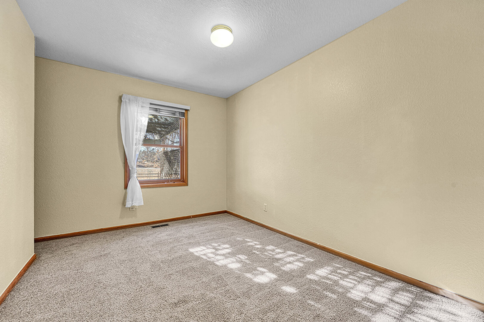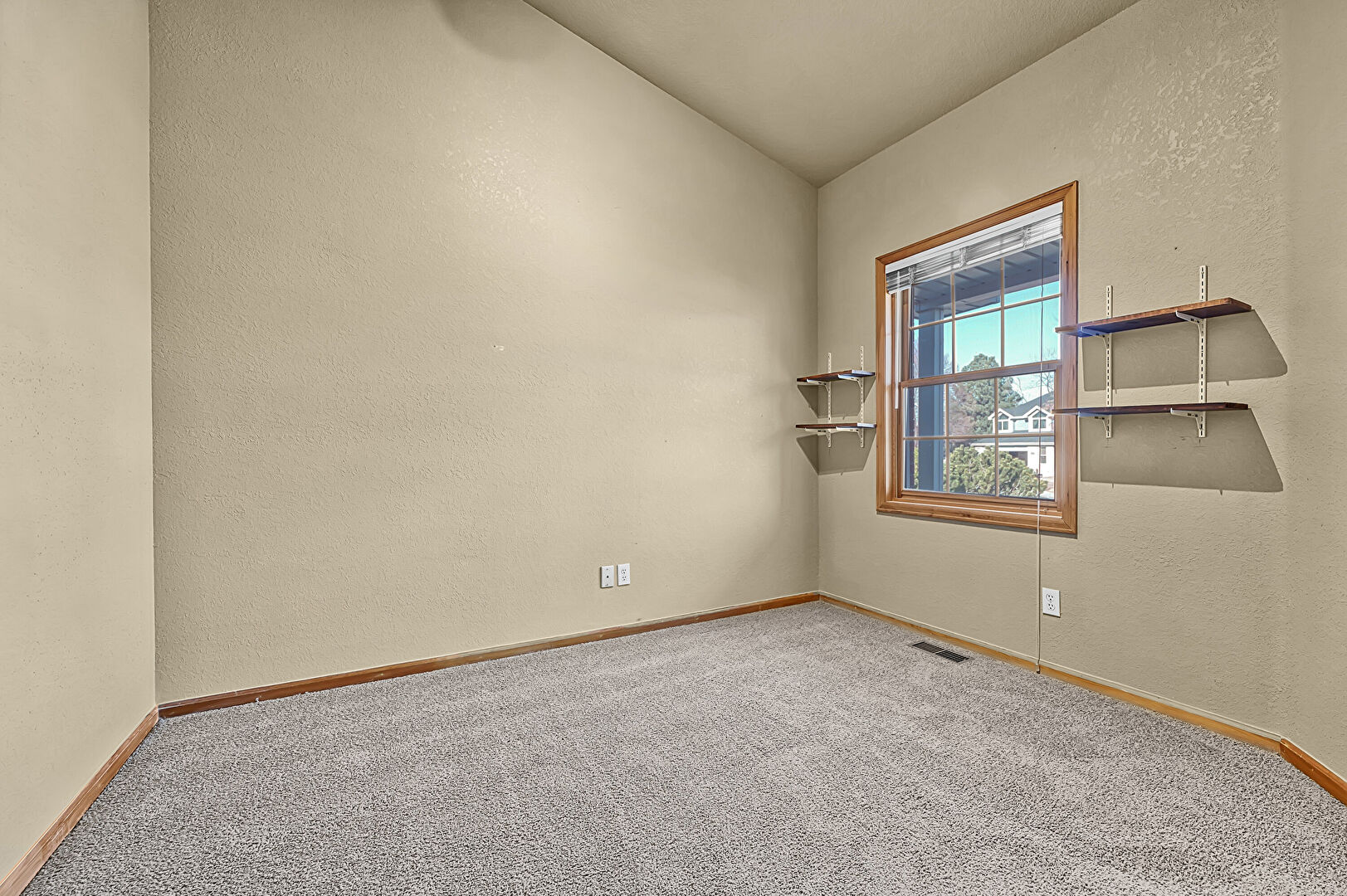 Baseboards Wall, Carpet, Textured Wall, Vaulted Ceiling, Vent, Natural Light