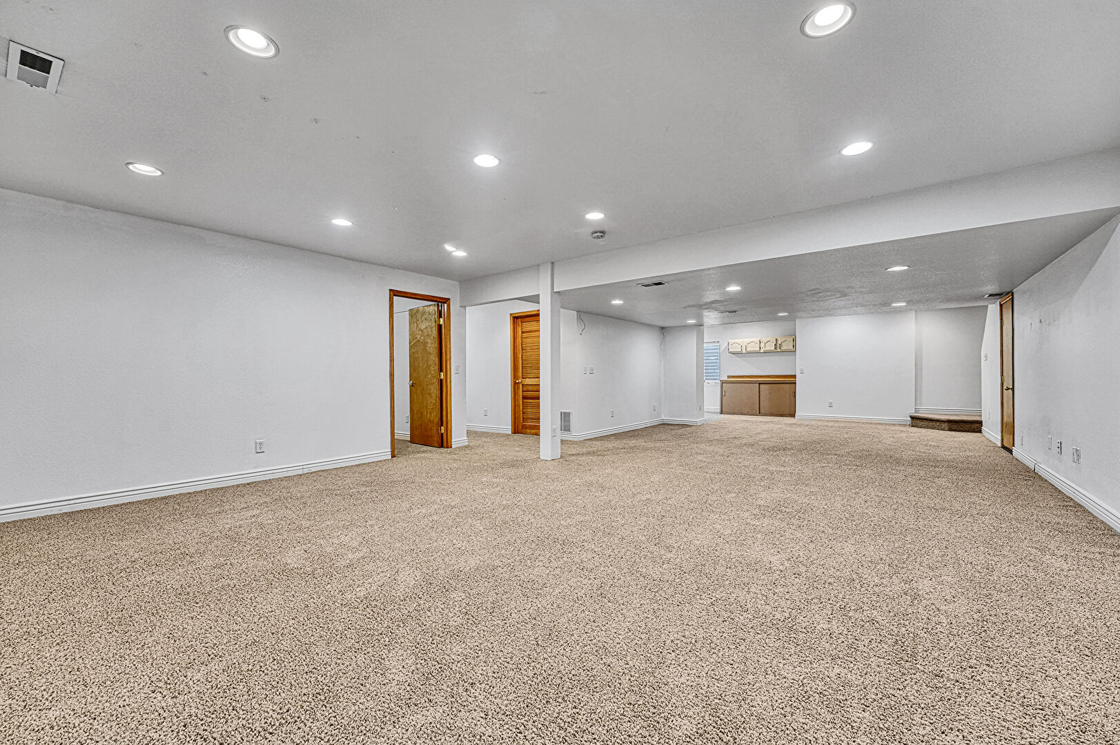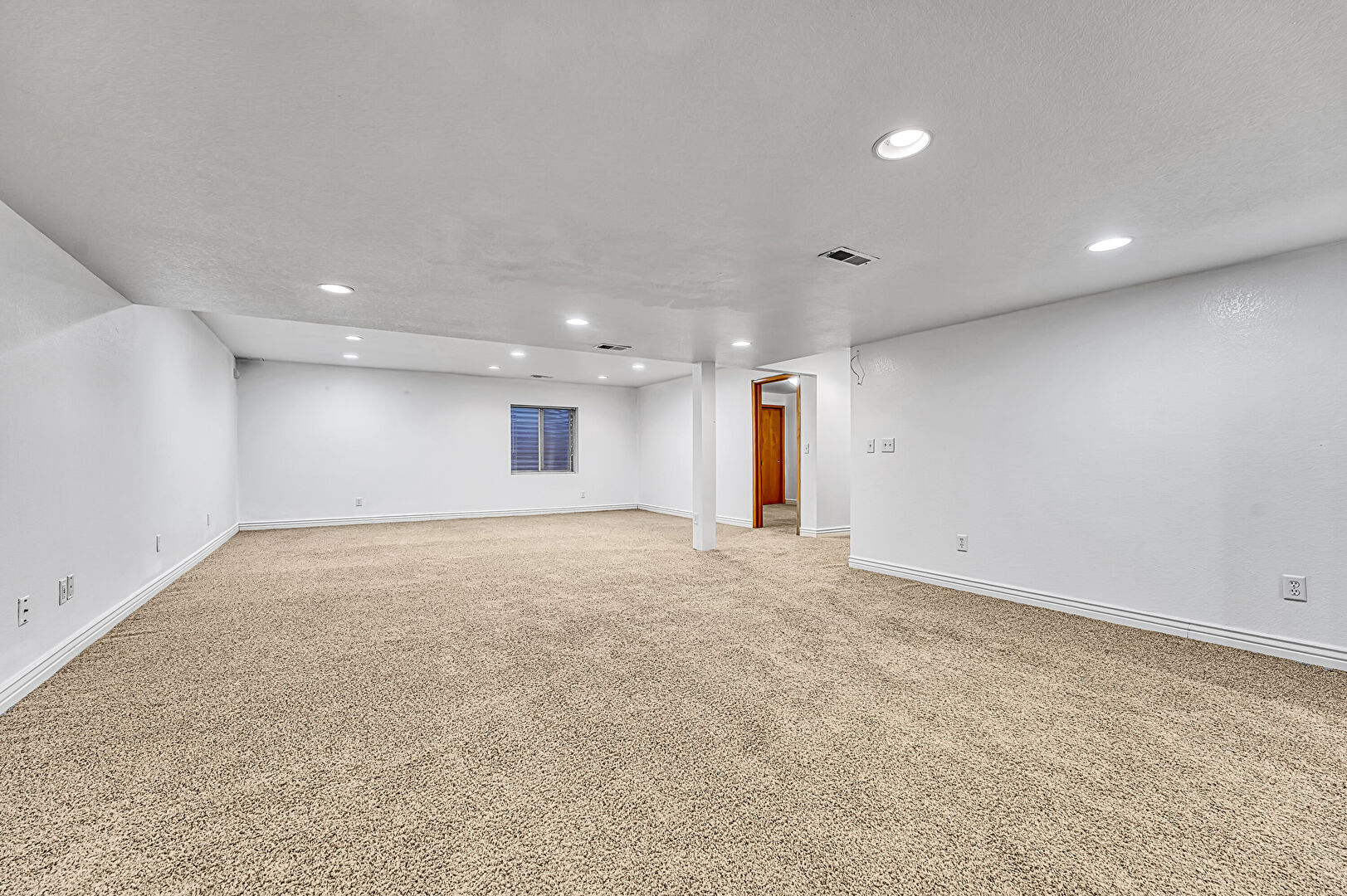 Baseboards Wall, Basement, Carpet, Drywall, Recessed Lighting, Vent, Baseboards Wall, Basement
