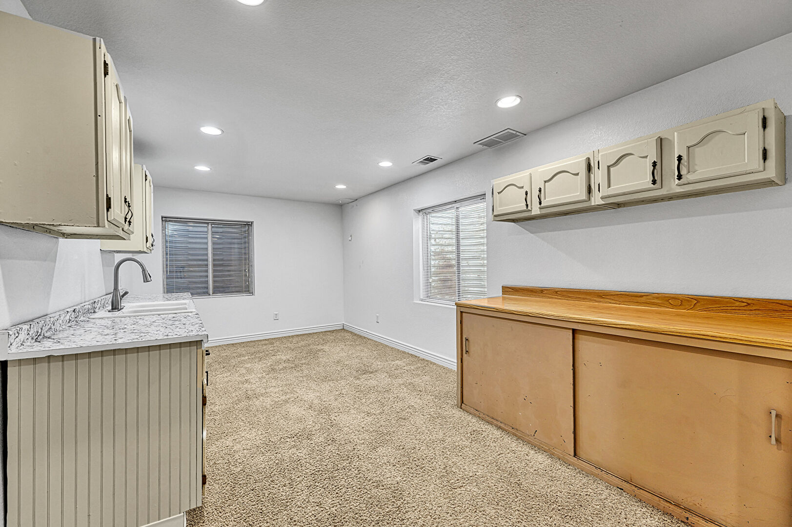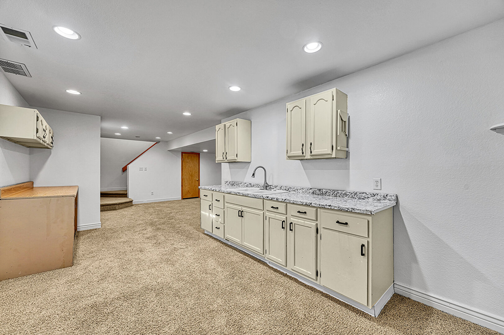 Baseboards Wall, Basement, Carpet, Drywall, Recessed Lighting, Vent