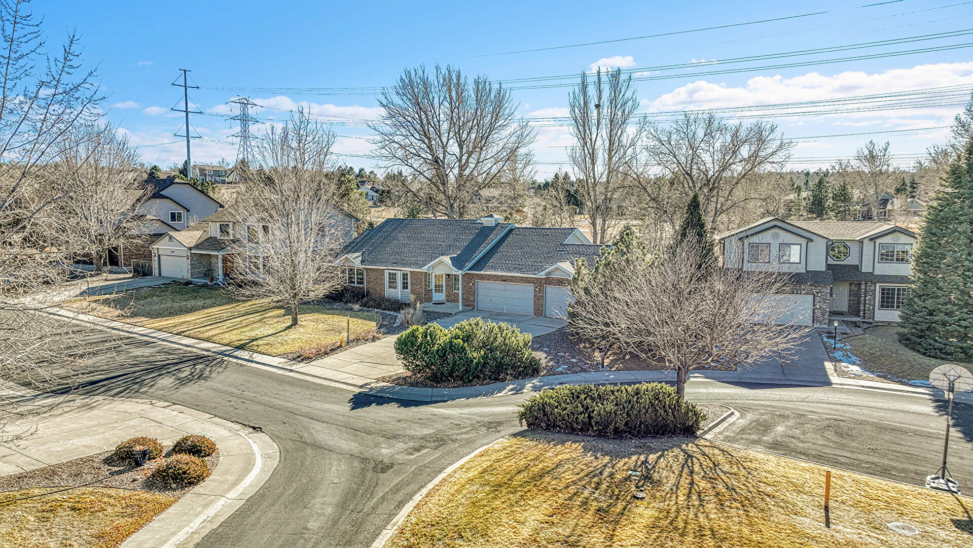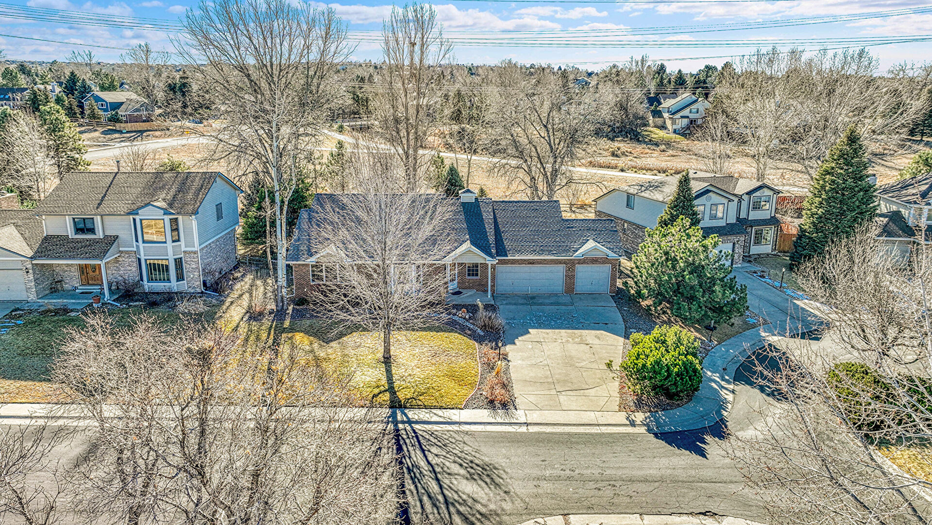 Brick Siding, Chimney, Downspout, Driveway, Gutters, Horizontal Siding, Lawn, Brick Siding, Driveway, Lawn