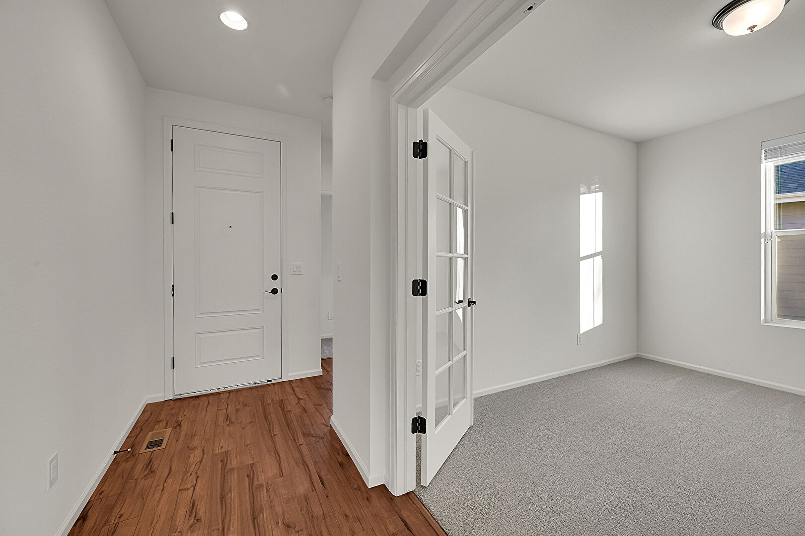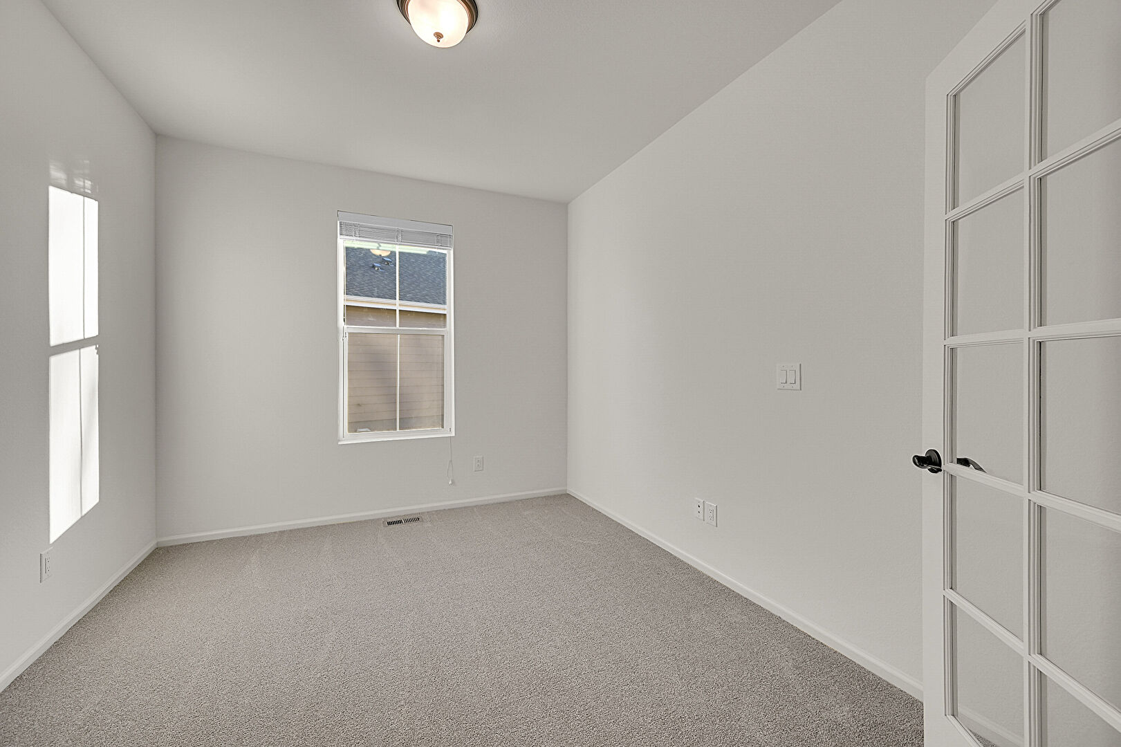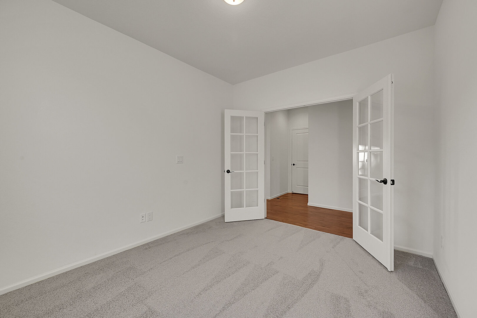 Baseboards Wall, Carpet, Drywall, Natural Light, Vent, Carpet, French Doors