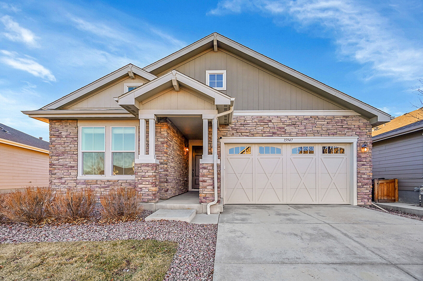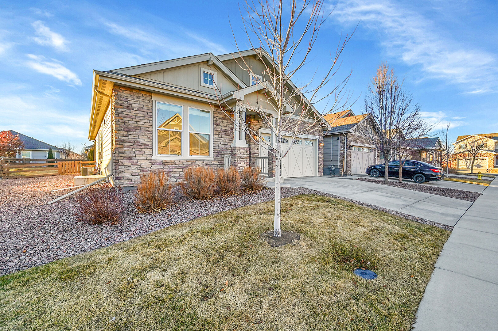Central Ac, Downspout, Driveway, Fence, Lawn, Mountain View, Residential View, Shingle Roof, Stone Siding, Vertical Siding, Driveway, Mountain View, Residential View