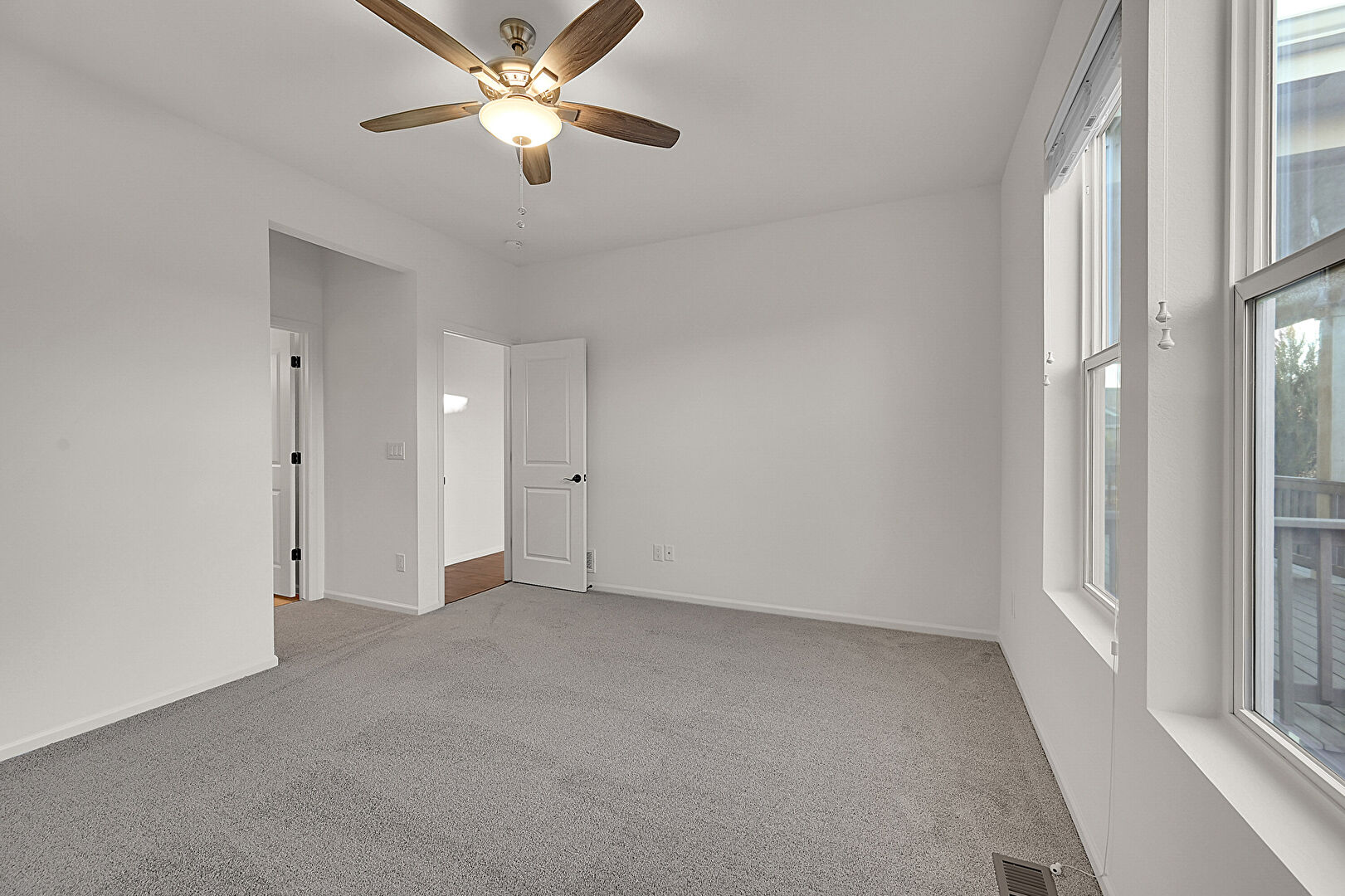 Baseboards Wall, Carpet, Ceiling Fan, Drywall, Natural Light, Vent, Baseboards Wall, Carpet, Ceiling Fan