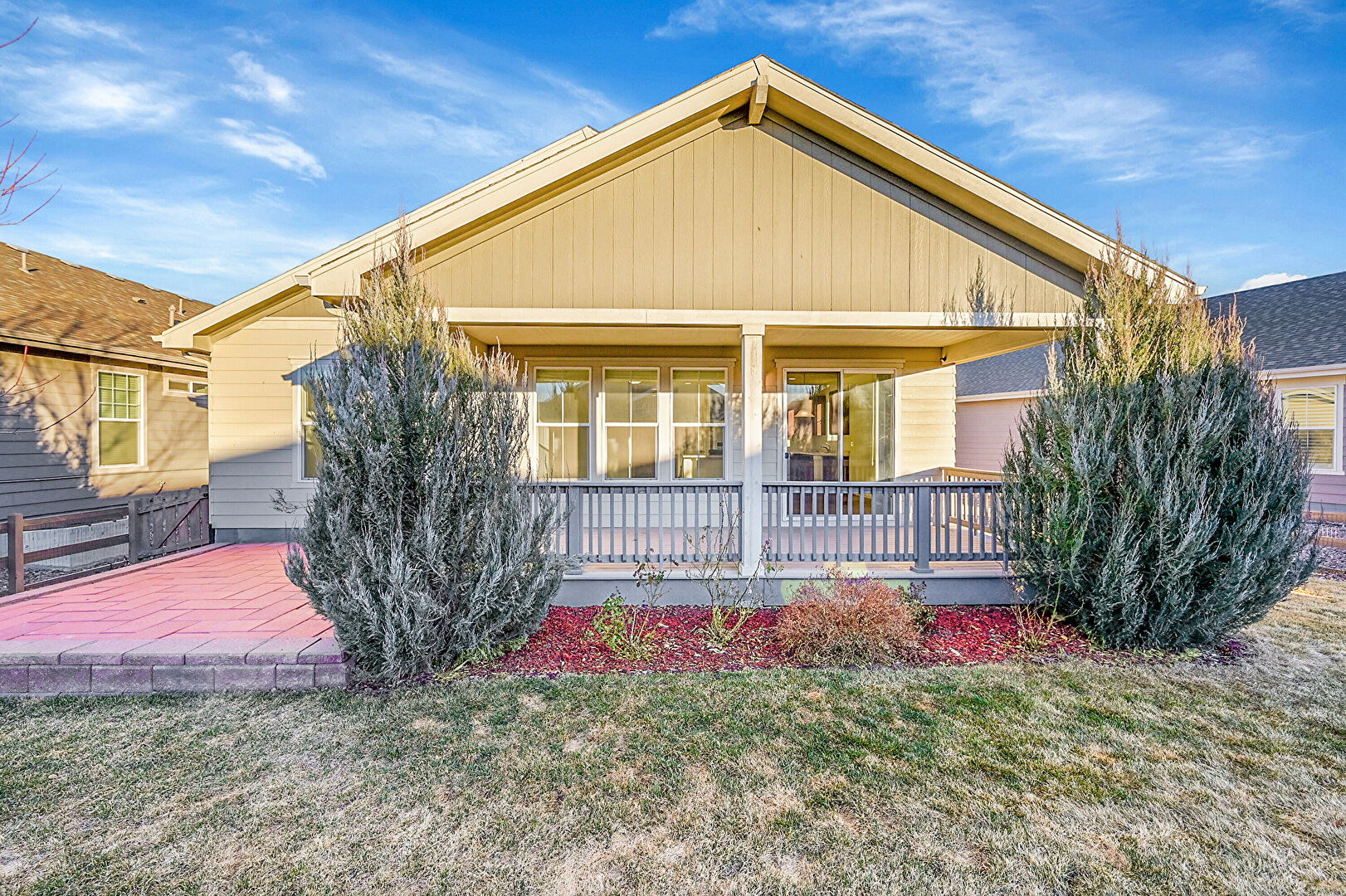 Deck, Electric Meter, Fence, Patio, Residential View, Fence, Lawn