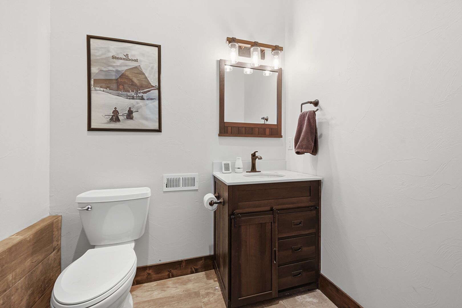 Baseboards Wall, Combined Bath Shower, Drywall, Full Bathroom, Natural Light, Tile Floor, Vanity, Vent, Full Bathroom, Half Bathroom, Natural Light