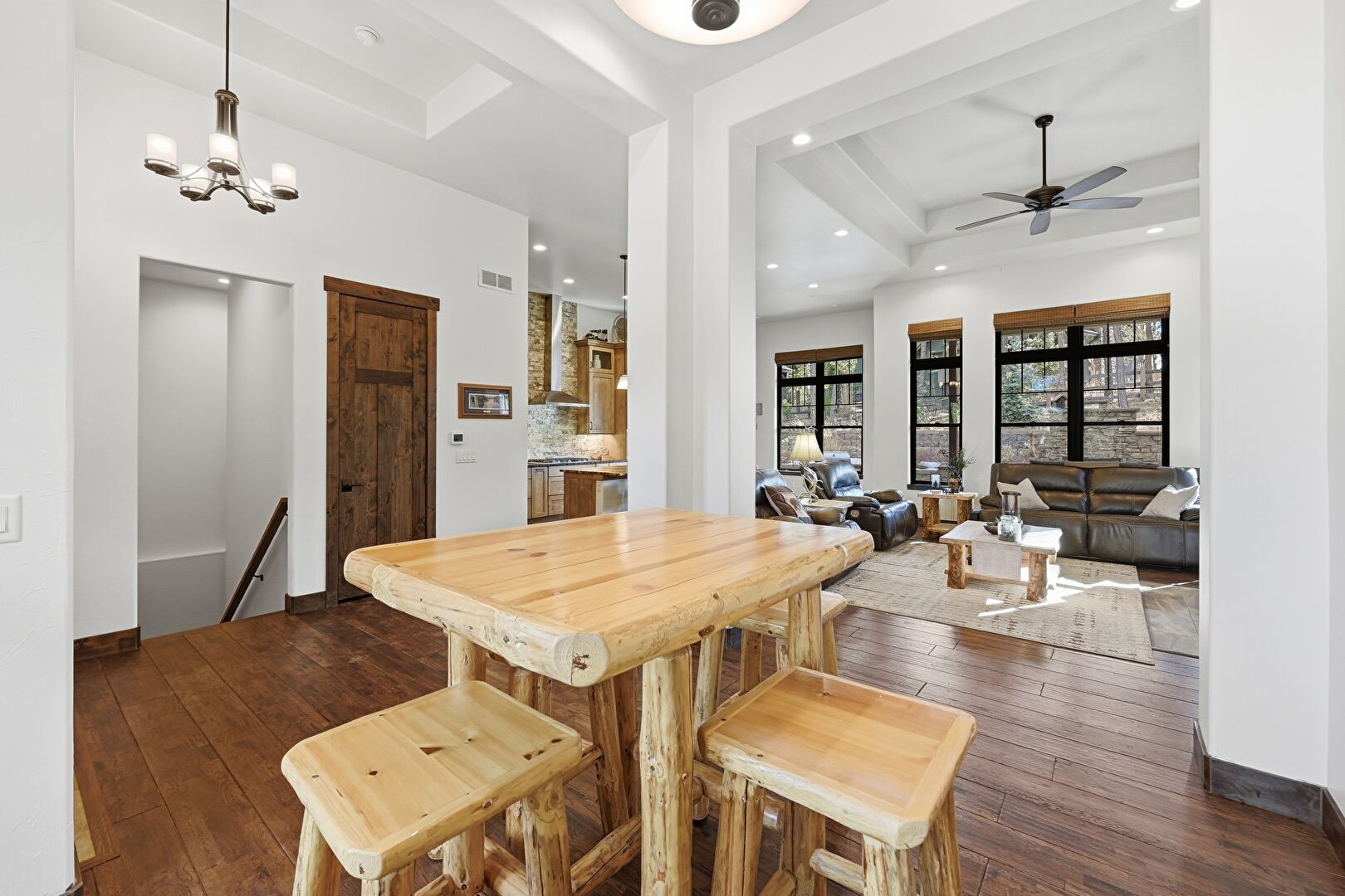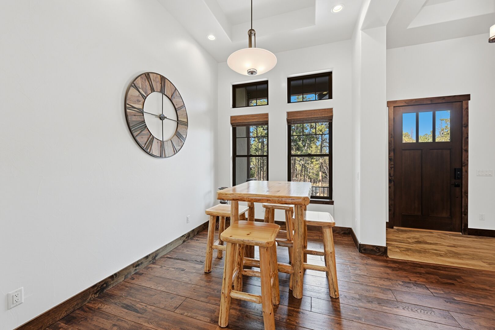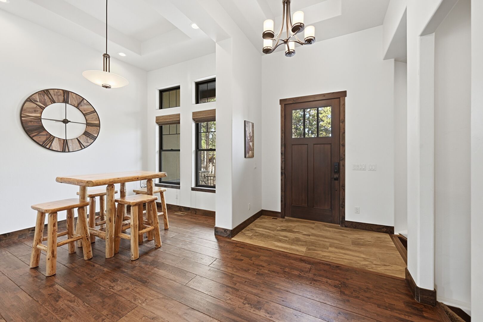 Baseboards Wall, Drywall, High Ceiling, Natural Light, Notable Chandelier, Recessed Lighting, Tray Ceiling, Vent, Wood Finish Floor, Baseboards Wall, High Ceiling