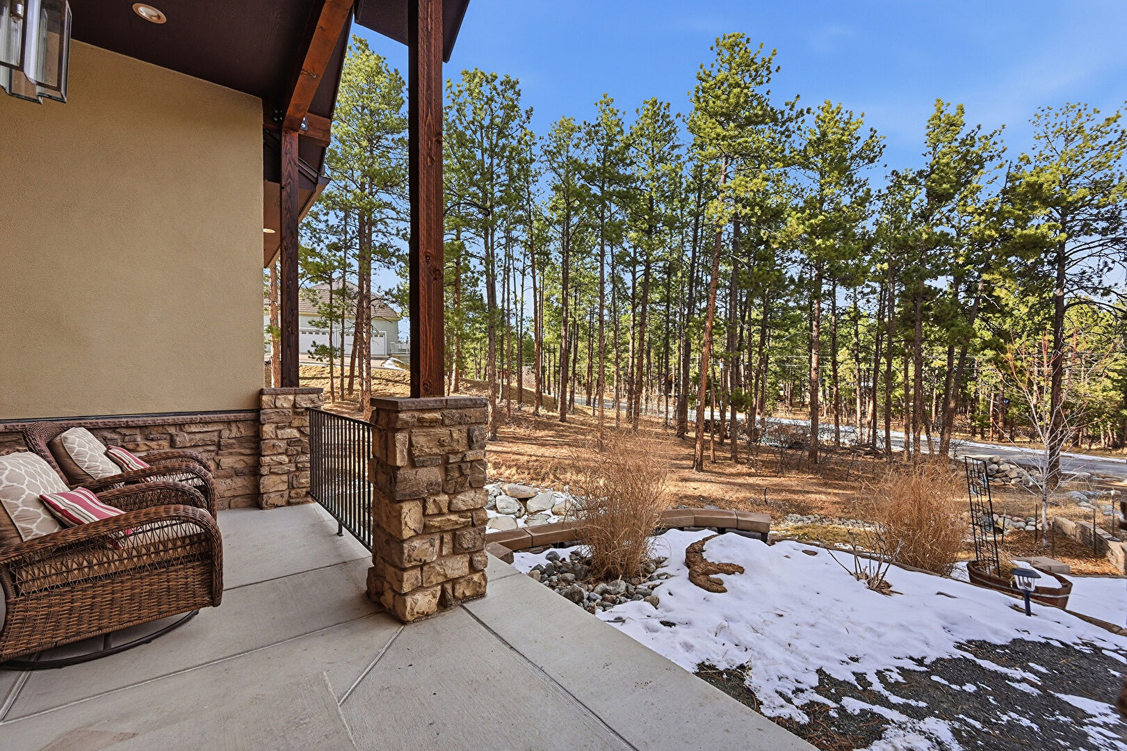 Downspout, Gutters, Stone Siding, Stucco Siding, Patio, Porch