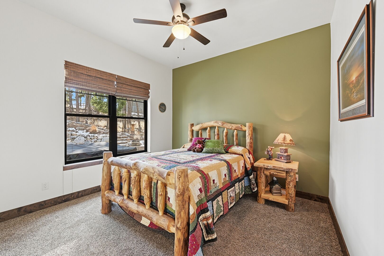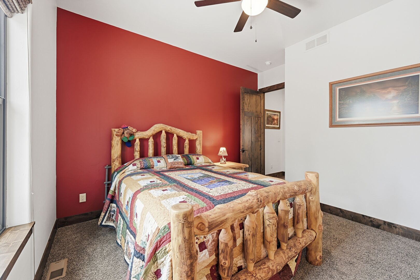 Accent Wall, Baseboards Wall, Carpet, Ceiling Fan, Drywall, Natural Light, Recessed Lighting, Vent, Wood Wall, Ceiling Fan, Drywall, Wainscot Wall