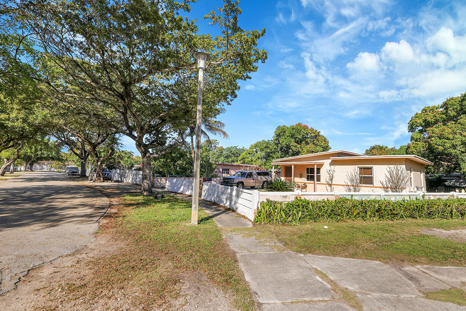 Driveway, Fence, Gate, Lawn, Parking Pad, Porch, Stucco Siding, Fence, Gate, Parking Pad, Stucco Siding