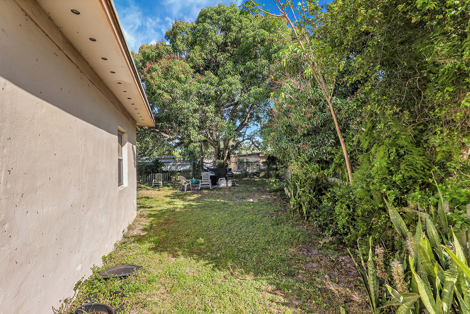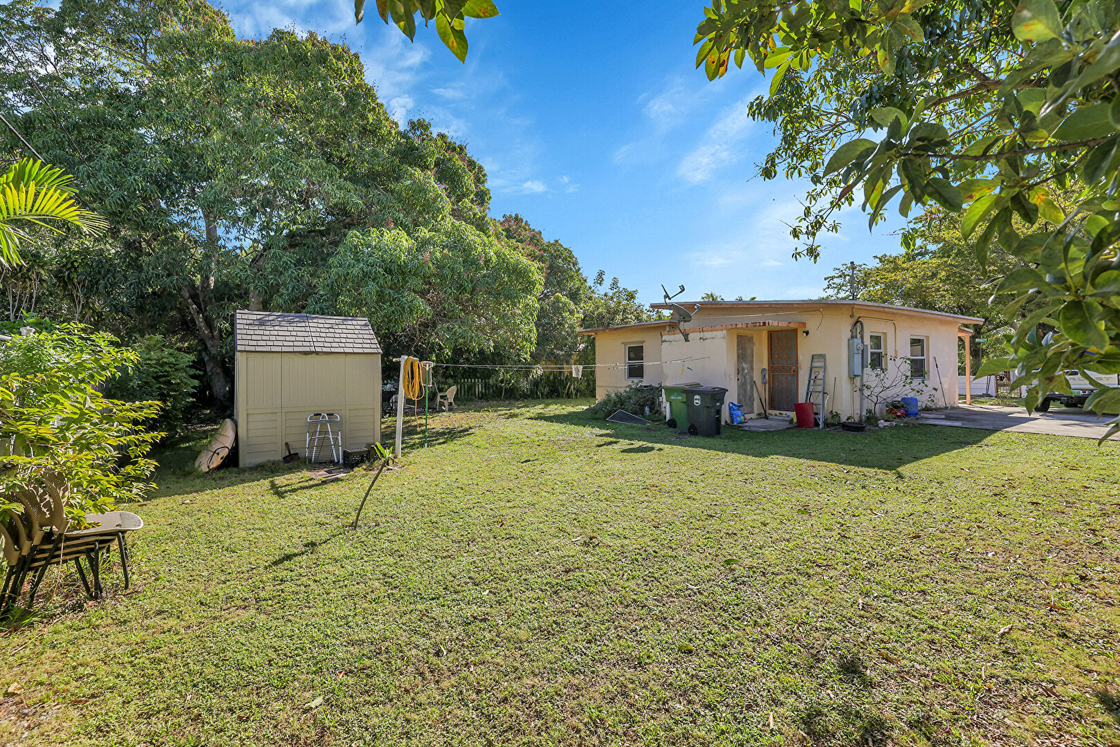 Lawn, Outdoor Structure, Shed, Stucco Siding, Fence
