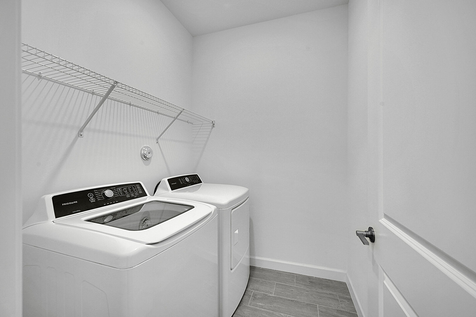 Drywall, Laundry, Wood Finish Floor, Baseboards Wall