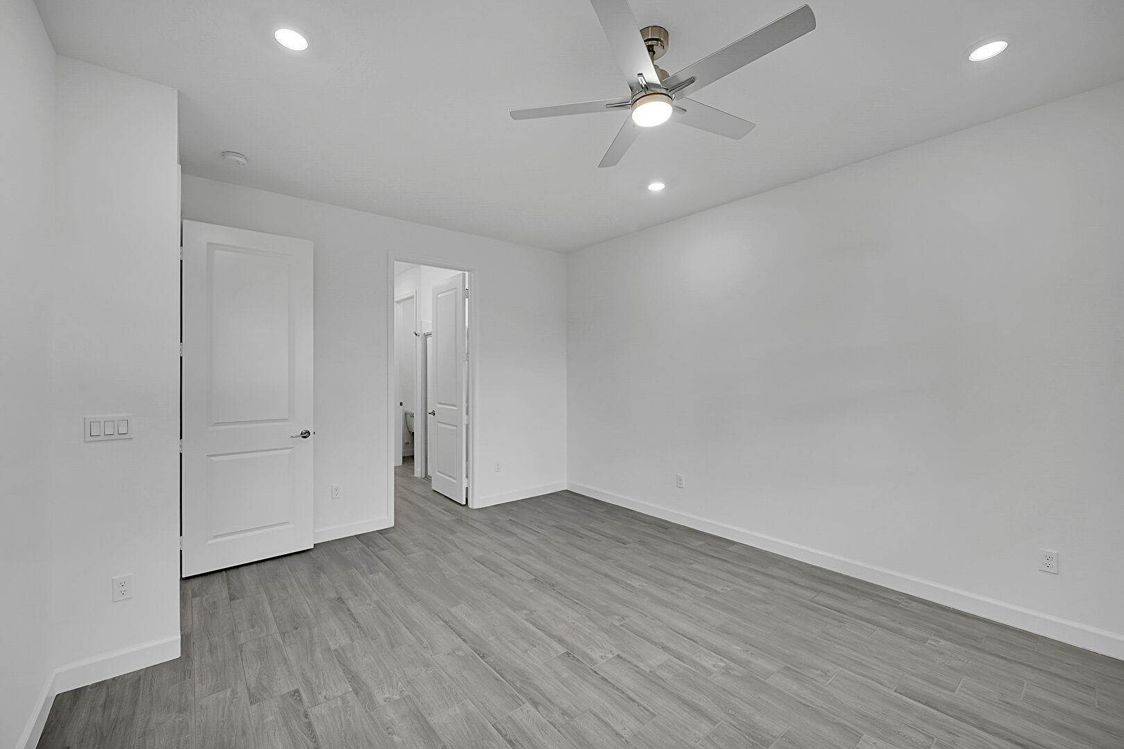 Baseboards Wall, Carpet, Ceiling Fan, Drywall, Ensuite Bathroom, Recessed Lighting, Vent, Wood Finish Floor, Baseboards Wall, Ensuite Bathroom, Walk In Closet