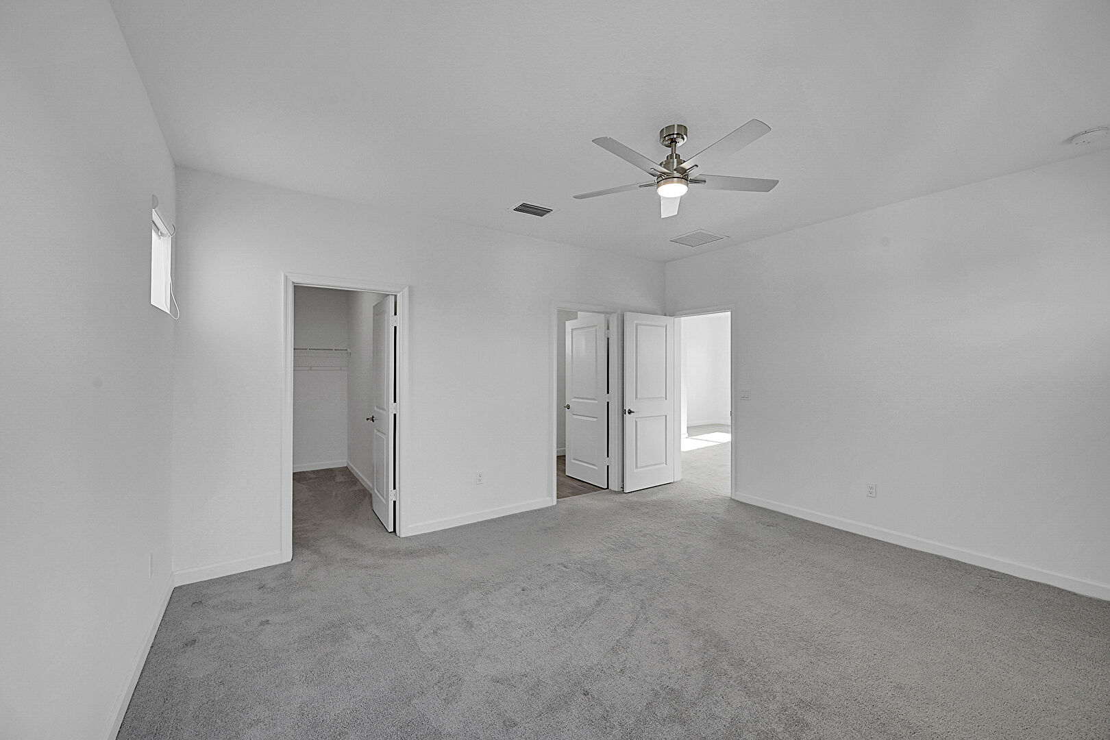 Baseboards Wall, Carpet, Closet, Drywall, Natural Light, Vent, Ceiling Fan
