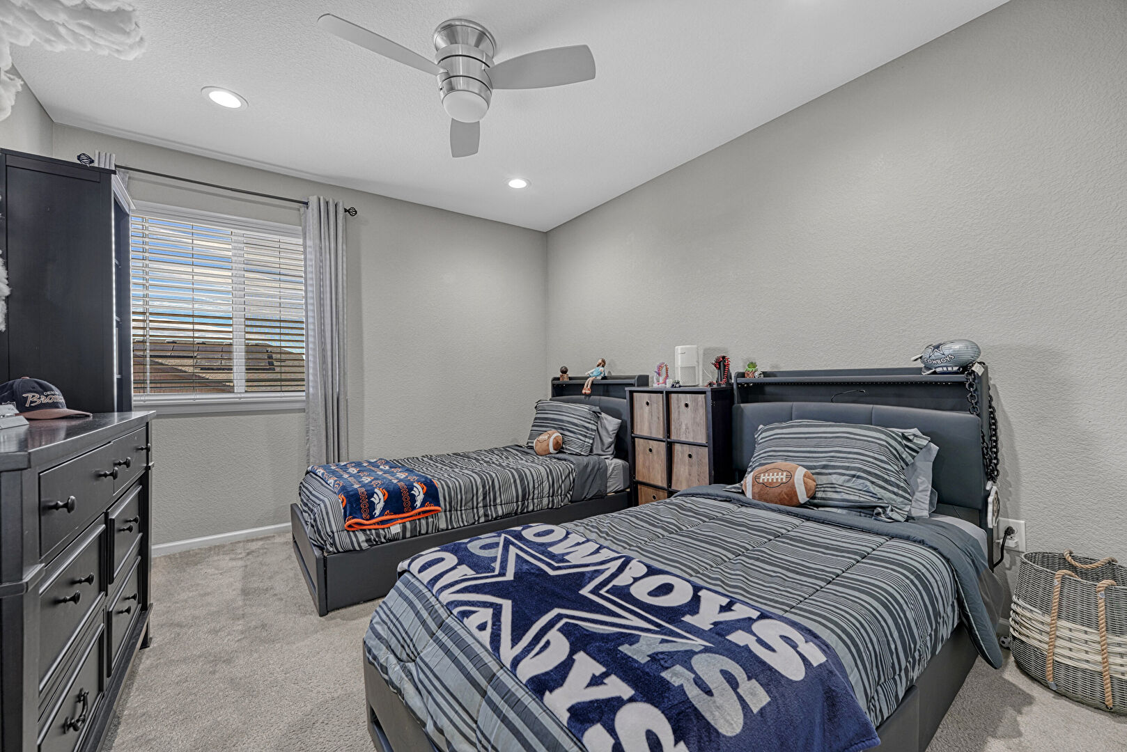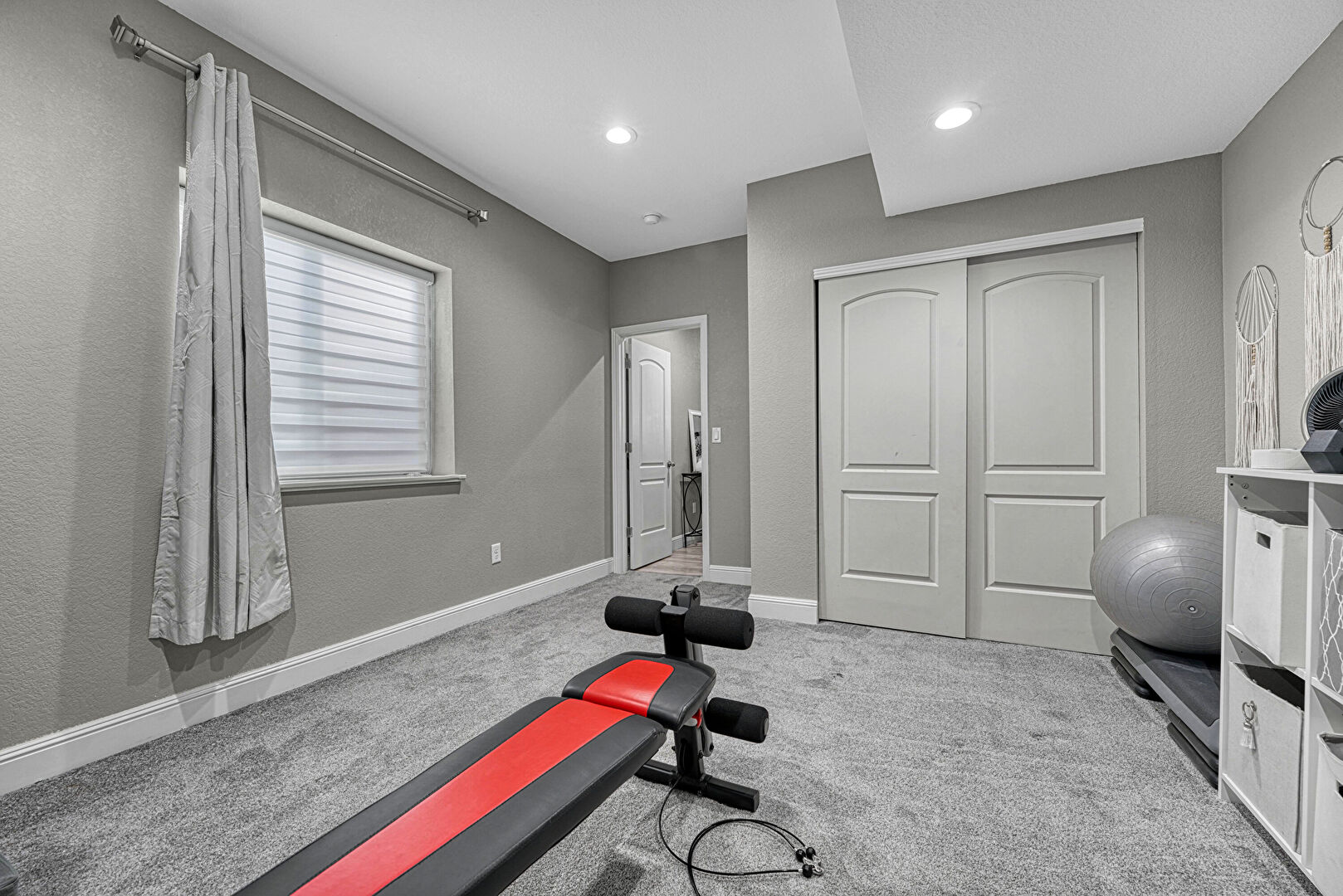 Baseboards Wall, Carpet, Ceiling Fan, Closet, Drywall, Natural Light, Office Area, Recessed Lighting, Smoke Carbon Monoxide Detector, Textured Ceiling, Textured Wall, Carpet, Closet, Natural Light, Recessed Lighting